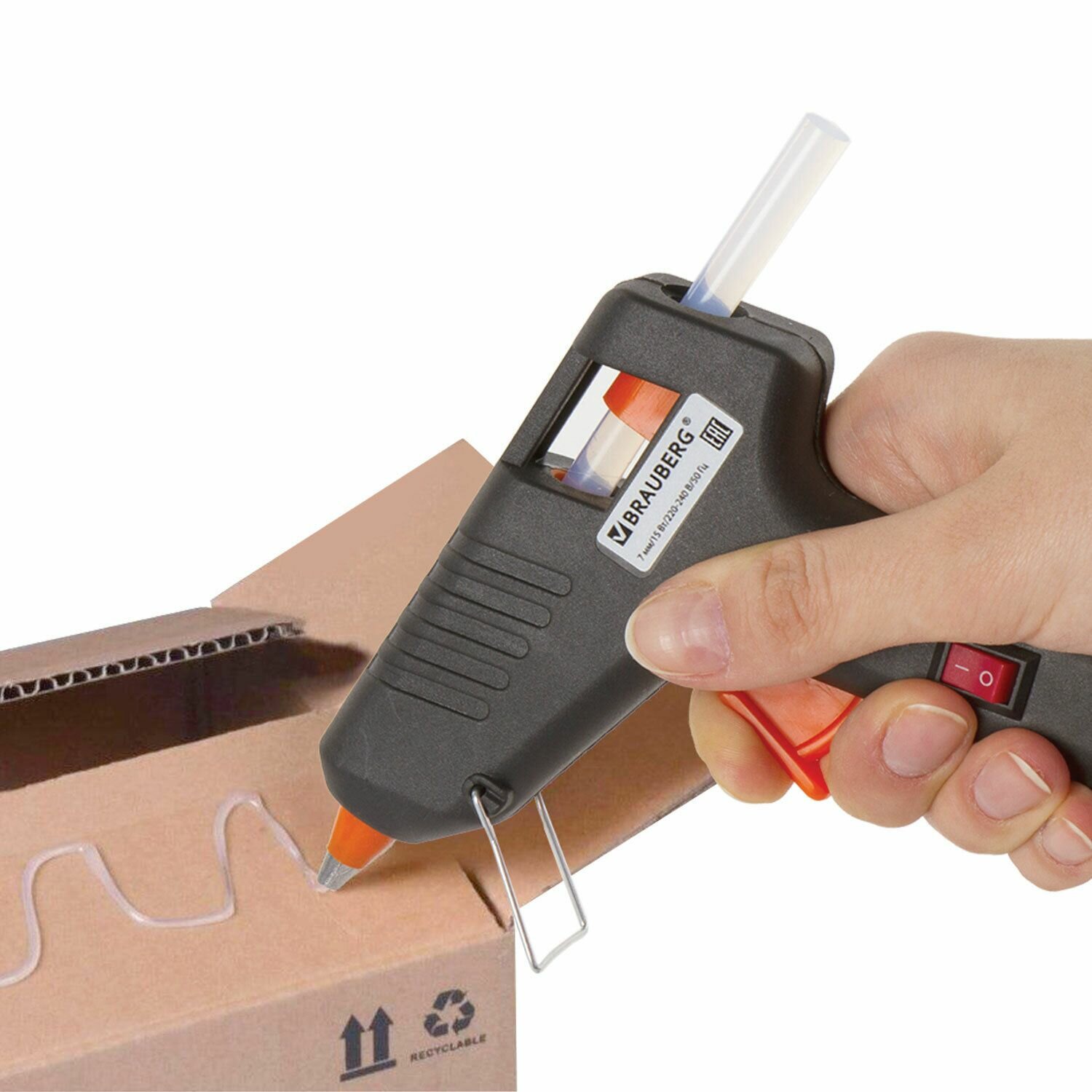 Клеевой пистолет 15 Вт для стержня 7 мм, с выключателем, BRAUBERG, в блистере, 671051, 671051
