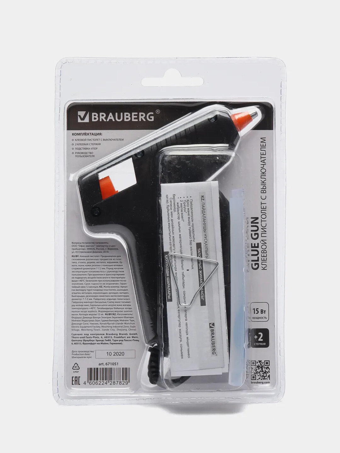 Клеевой пистолет BRAUBERG 671051, 15 Вт черный