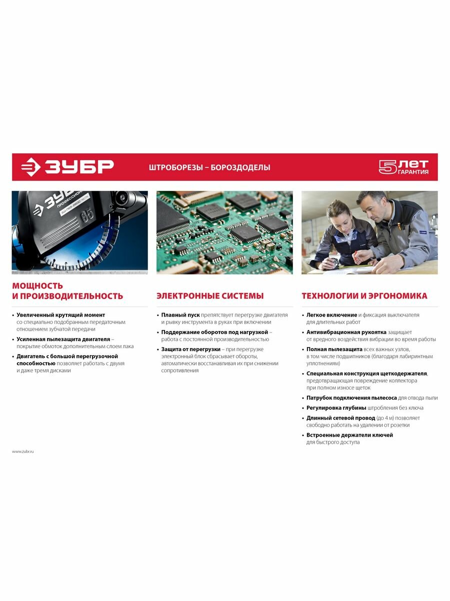 ЗУБР d 125 мм, 1400 Вт, 30 мм, штроборез (бороздодел), Профессионал (ЗШ-П30-1400 ПСТ)