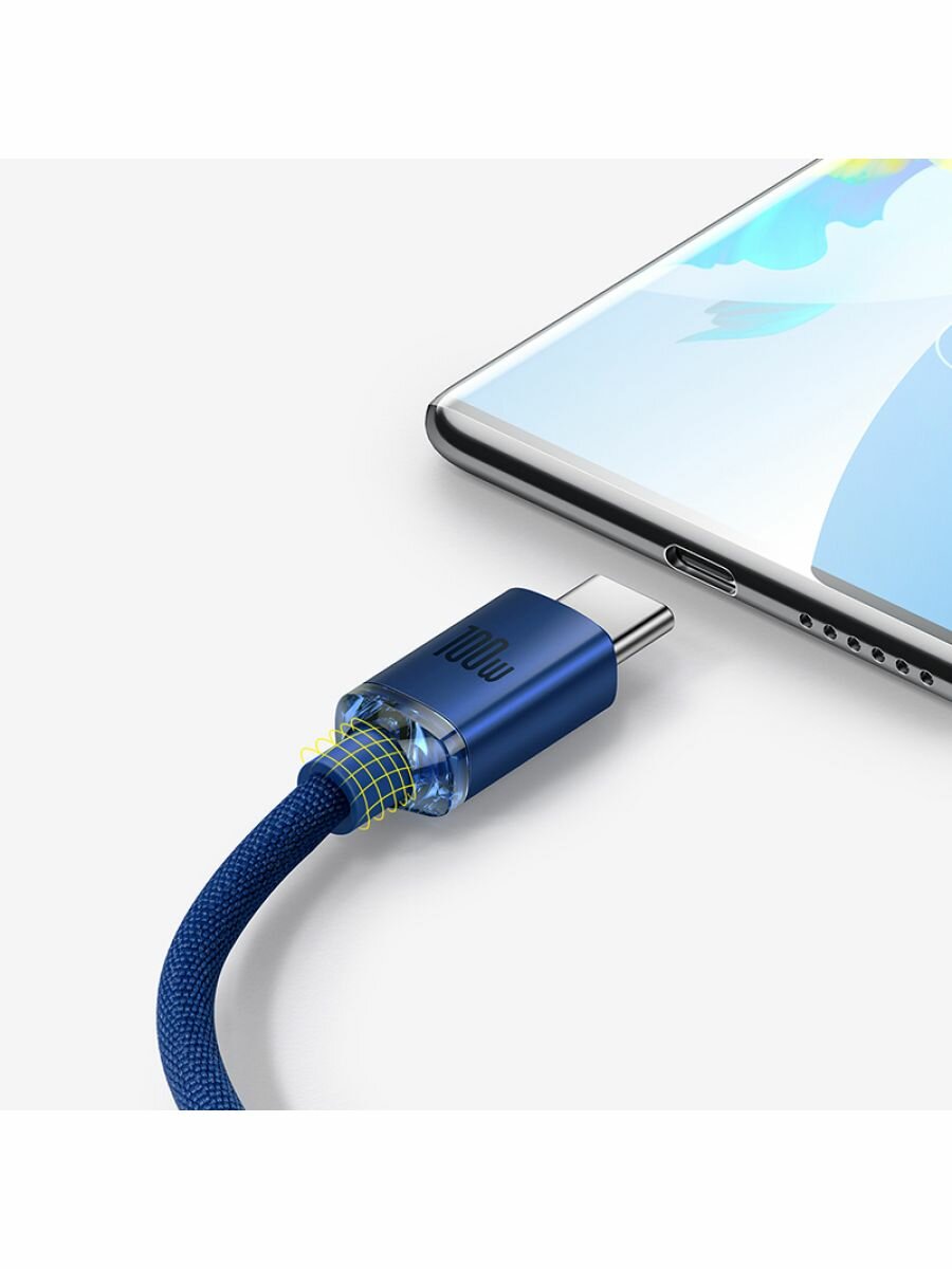 Кабель Baseus Crystal Shine Series Fast Charging Data Cable USB to Type-C 100W 1.2m Blue (CAJY000403) интересное: