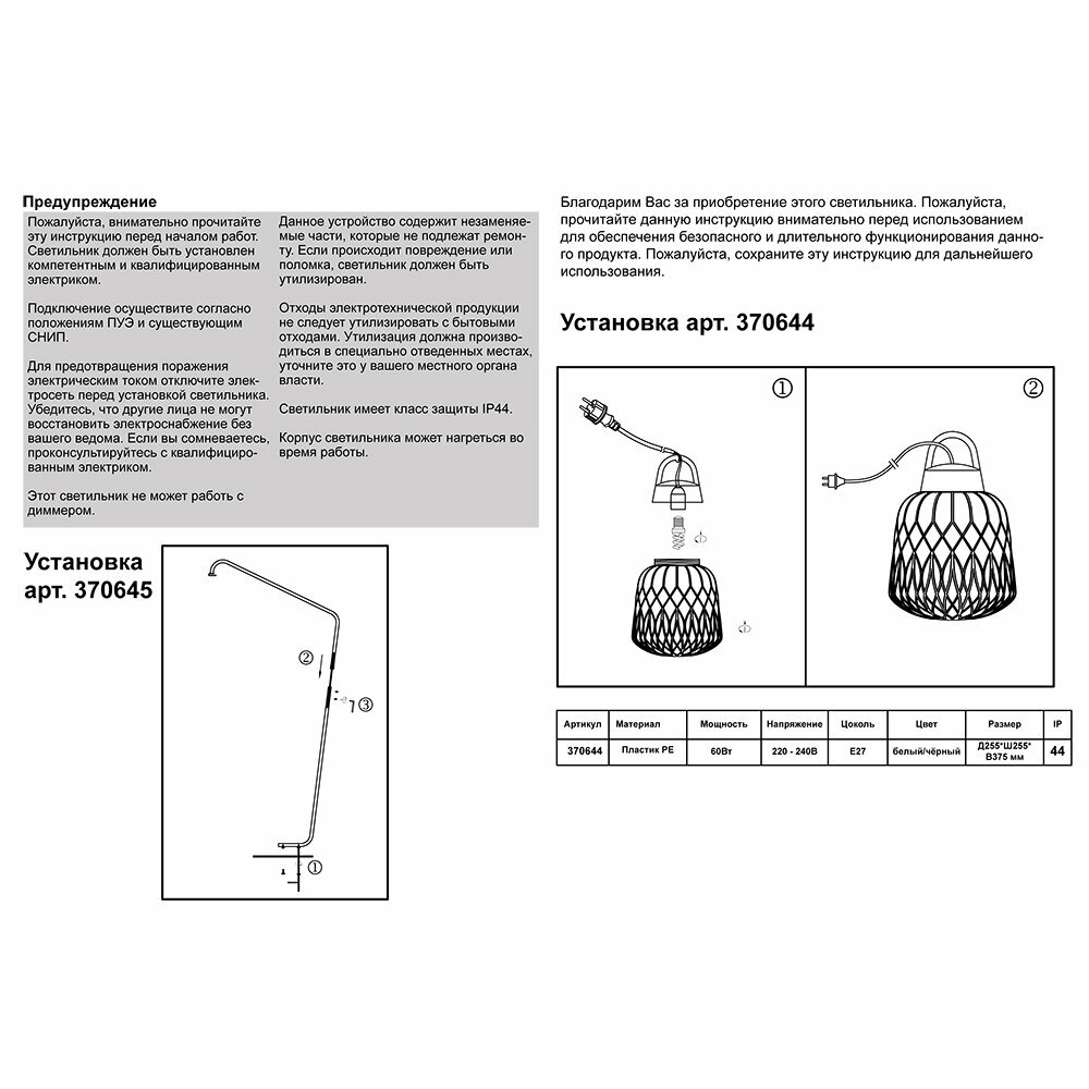 Подвесной светильник 370644 STREET NT19 182 белый абажур/черная арматура IP44 Е27 60W 220-240V CONTE