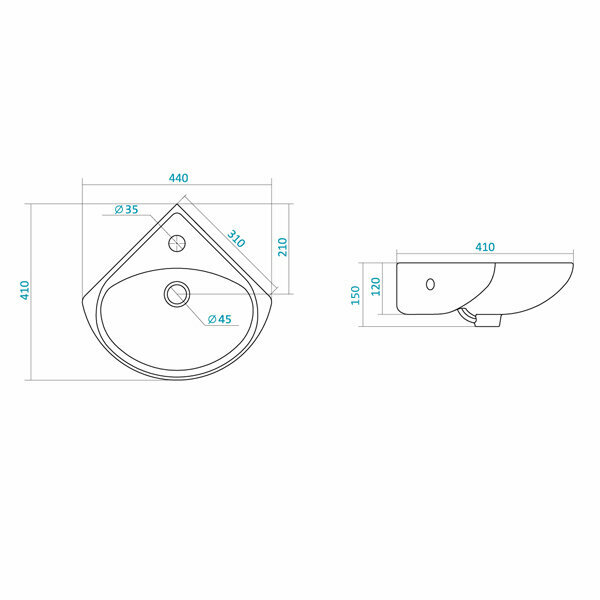 Умывальник SANTEK ирис WH110514, 36 см. угловой, с отверстием