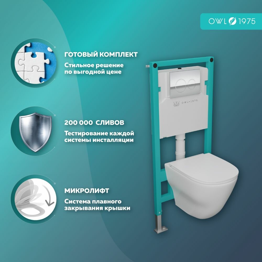 Унитаз подвесной безободковый OWL 1975 Wave с сиденьем микролифт (OWLT190801)