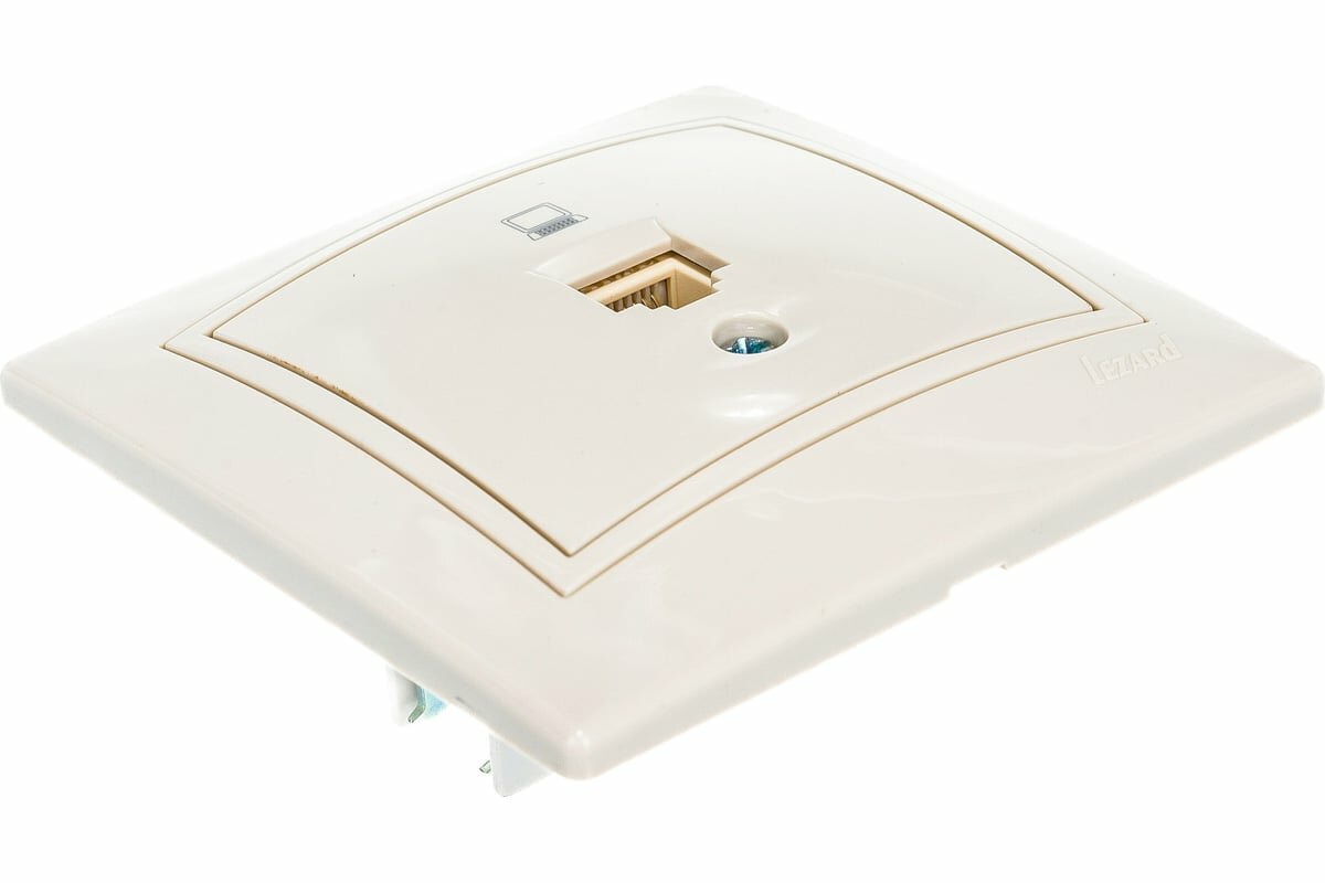 Розетка компьютерная RJ45 Lezard Mira встраиваемая, в сборе, кремовый
