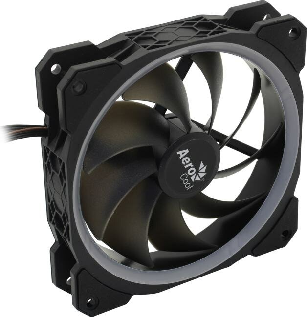 Вентилятор Aerocool ORBIT , 120x120x25мм, 16,8 млн. цветов, RGB подсветка в виде двойного кольца, 3-Pin, 1200 об/мин, 55,9 CFM, 14,1 дБА