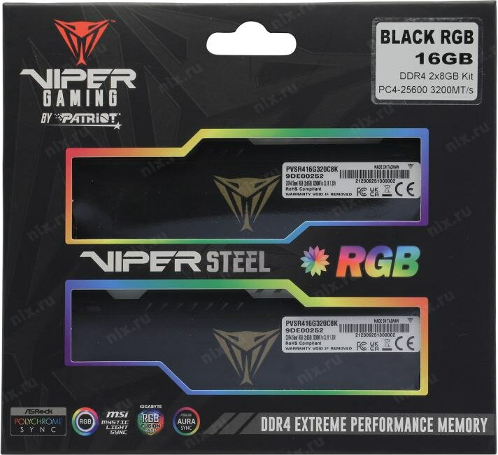 Patriot Viper Steel RGB Pvsr416g320c8k DDR4 - 2x 8ГБ 3200, Dimm, Ret .