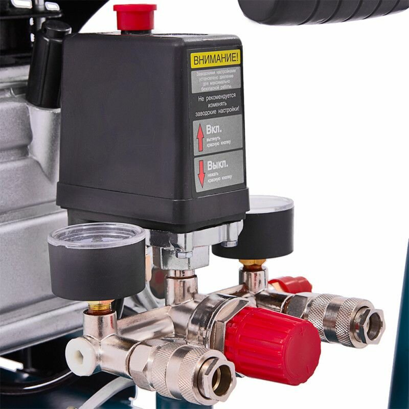 При низком напряжении и "хилом" удлинителе может не запуститься 1 из компрессоров. У меня, при 205V в сети случались казусы. При старте просадка была приличная. Если у вас есть проблемы с напругой, желательно контролировать моменты включения, и вовремя перезапускать. Это не является недостатком компрессора! Обычный масляный фубаг у соседа вообще не пускался. Выход из положения - стабилизатор, либо повышающий трансформатор.