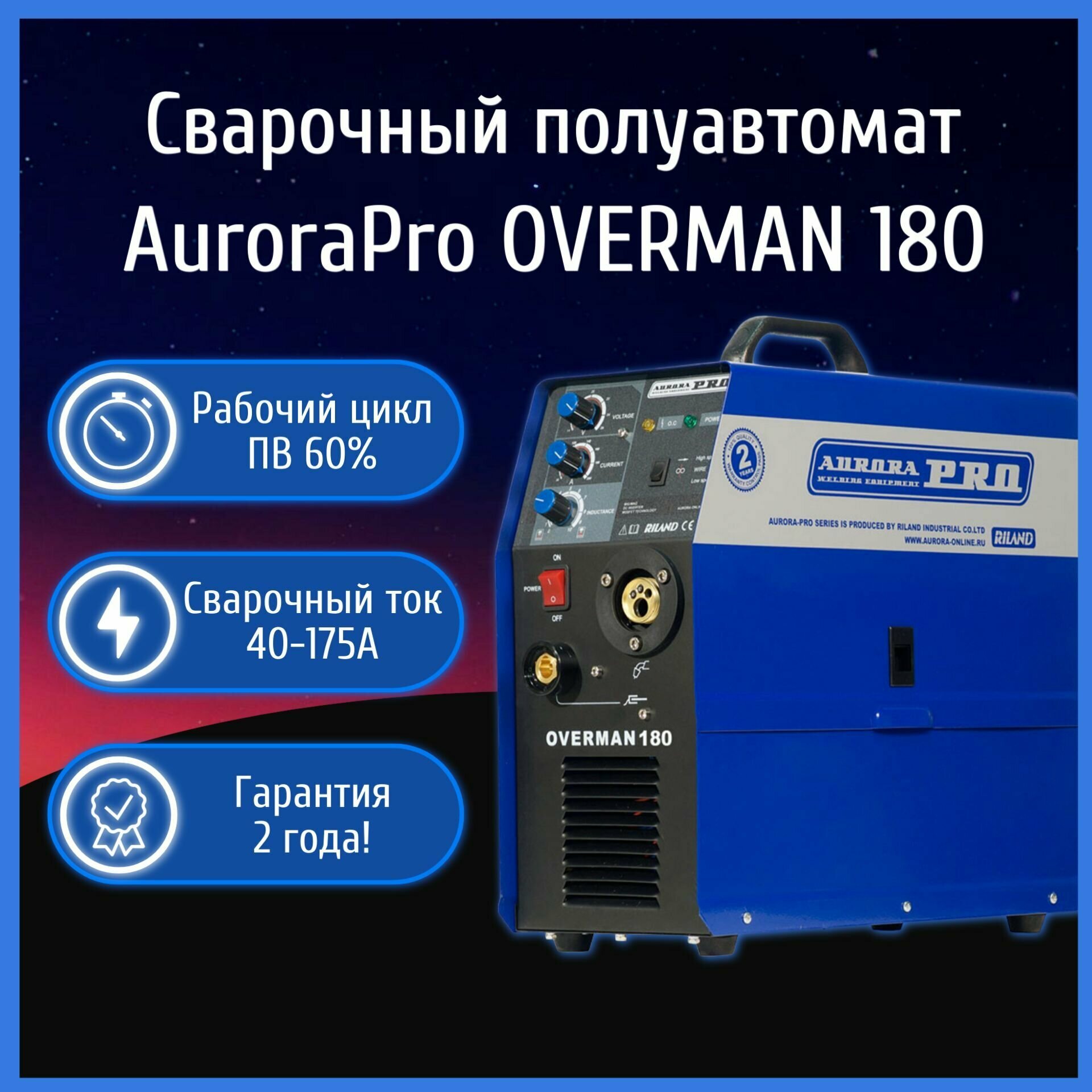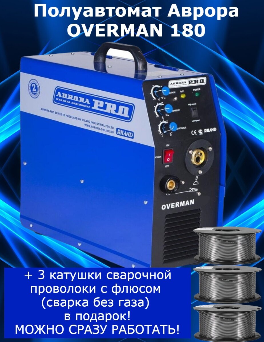 Сварочный инвертор Aurora OVERMAN 180 mosfet, плюс 2 кг порошковой проволоки, электроды и сварочные краги