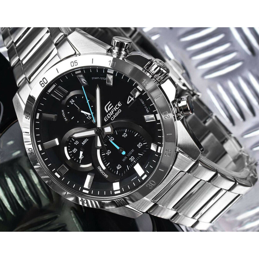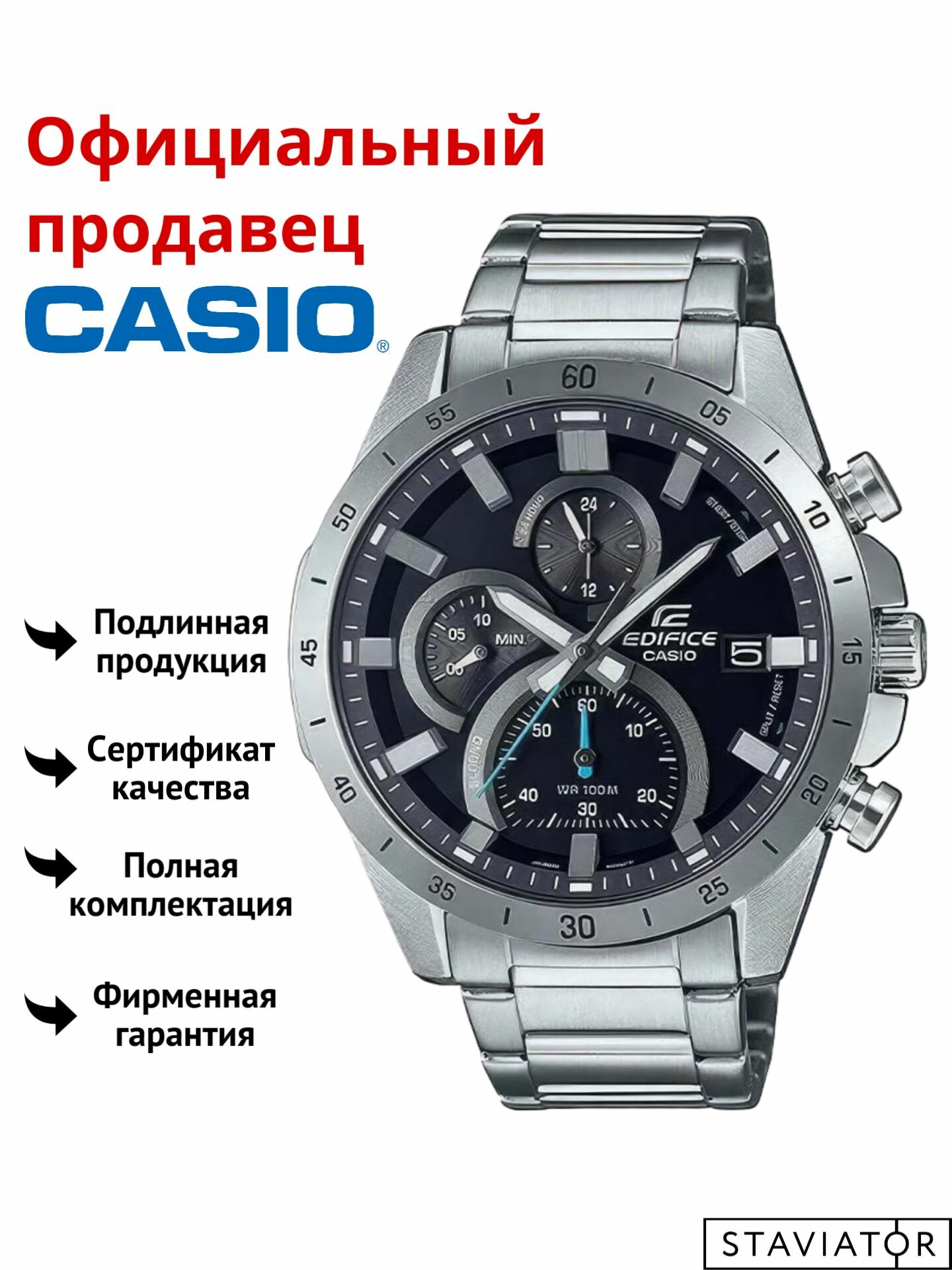 EFR-571D-1A Casio наручные часы кварцевые WR100 (10 атм) мужские серебряный, черный отображение числа подсветка стрелок минеральное стекло
