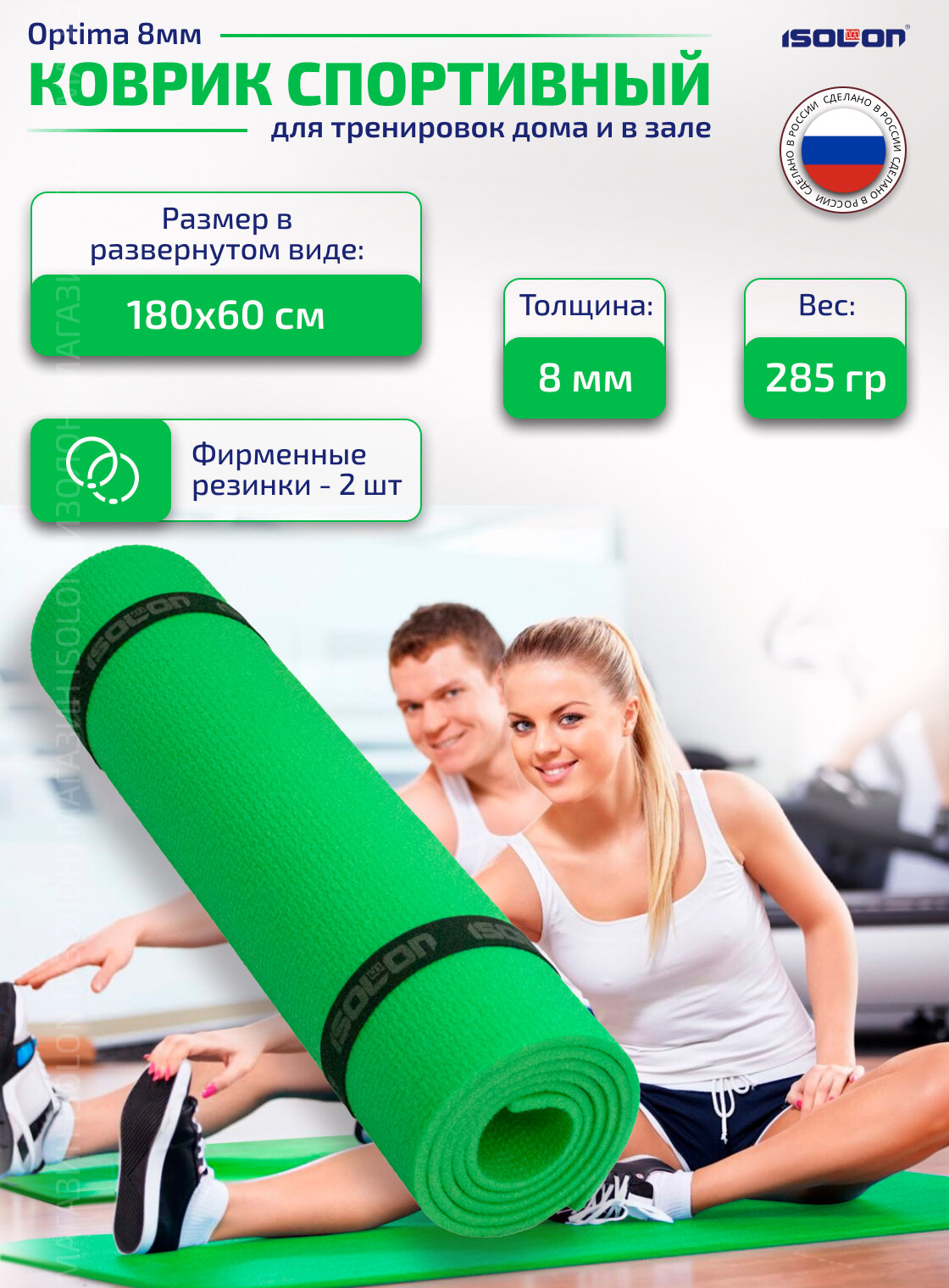Коврик спортивный и туристический для похода и отдыха ISOLON Optima Light 8, 180х60 см зеленый