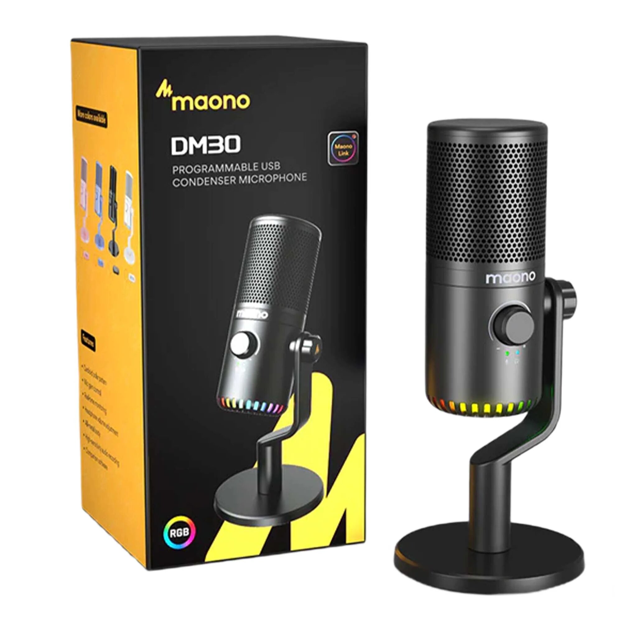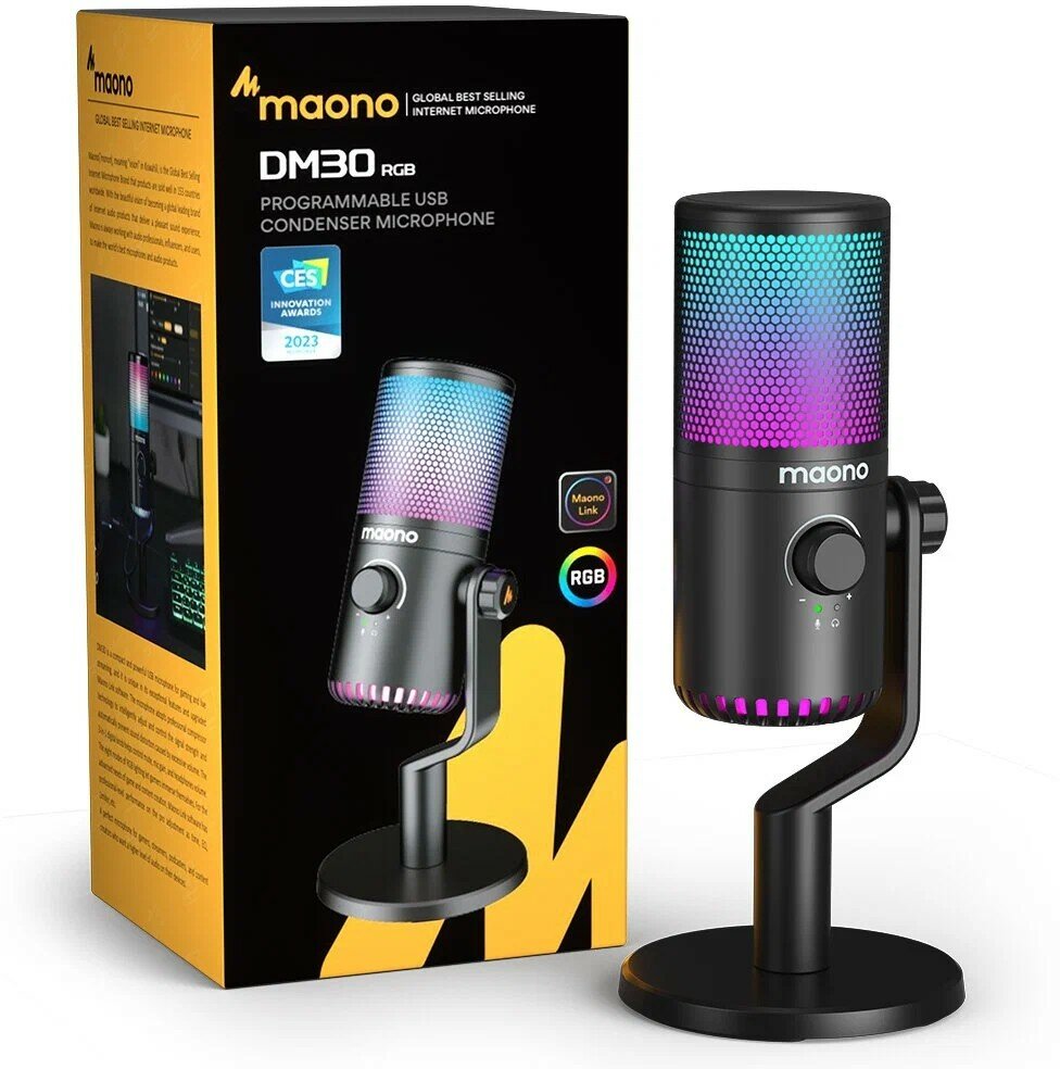 Микрофон MAONO, модель DM30 с RGB подсветкой, USB, черный