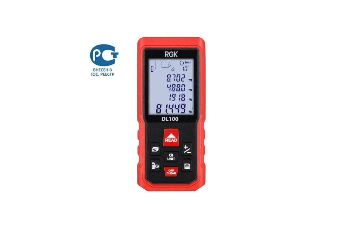 Лазерный дальномер с угломером RGK DL100, 100м, Госреестр (арт. 4610011875076)