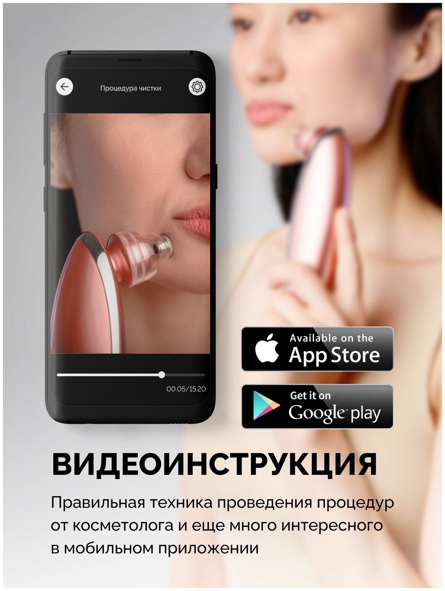 Sleek прибор для вакуумной чистки и микродермабразии лица с микрокамерой и приложением