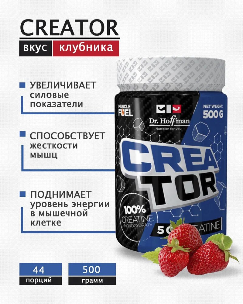 Креатин моногидрат для роста мышц Доктор Хоффман / CreaTor Dr. Hoffman / 500 гр / клубника