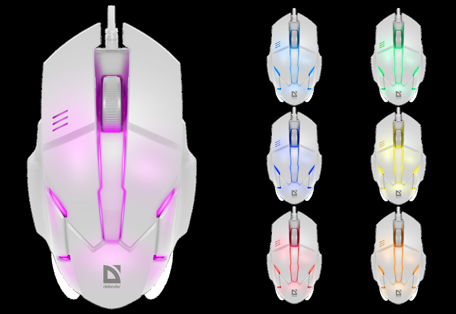 Мышь Defender MB-982 Host полноразмерная, 7 цветов, 1000 dpi, белая