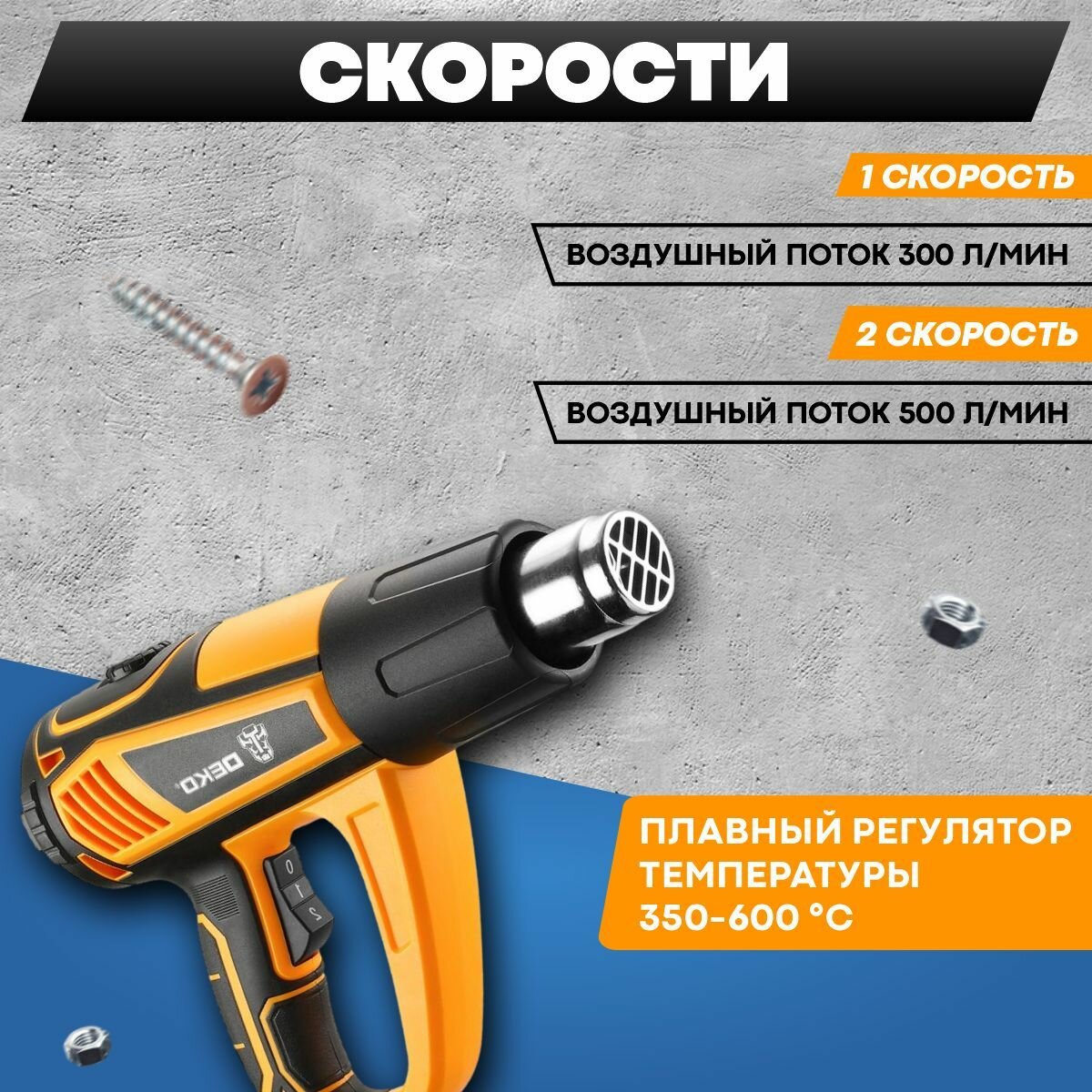 Строительный фен DEKO HG2000W, 2000Вт, 2 скорости, защита от перегрева
