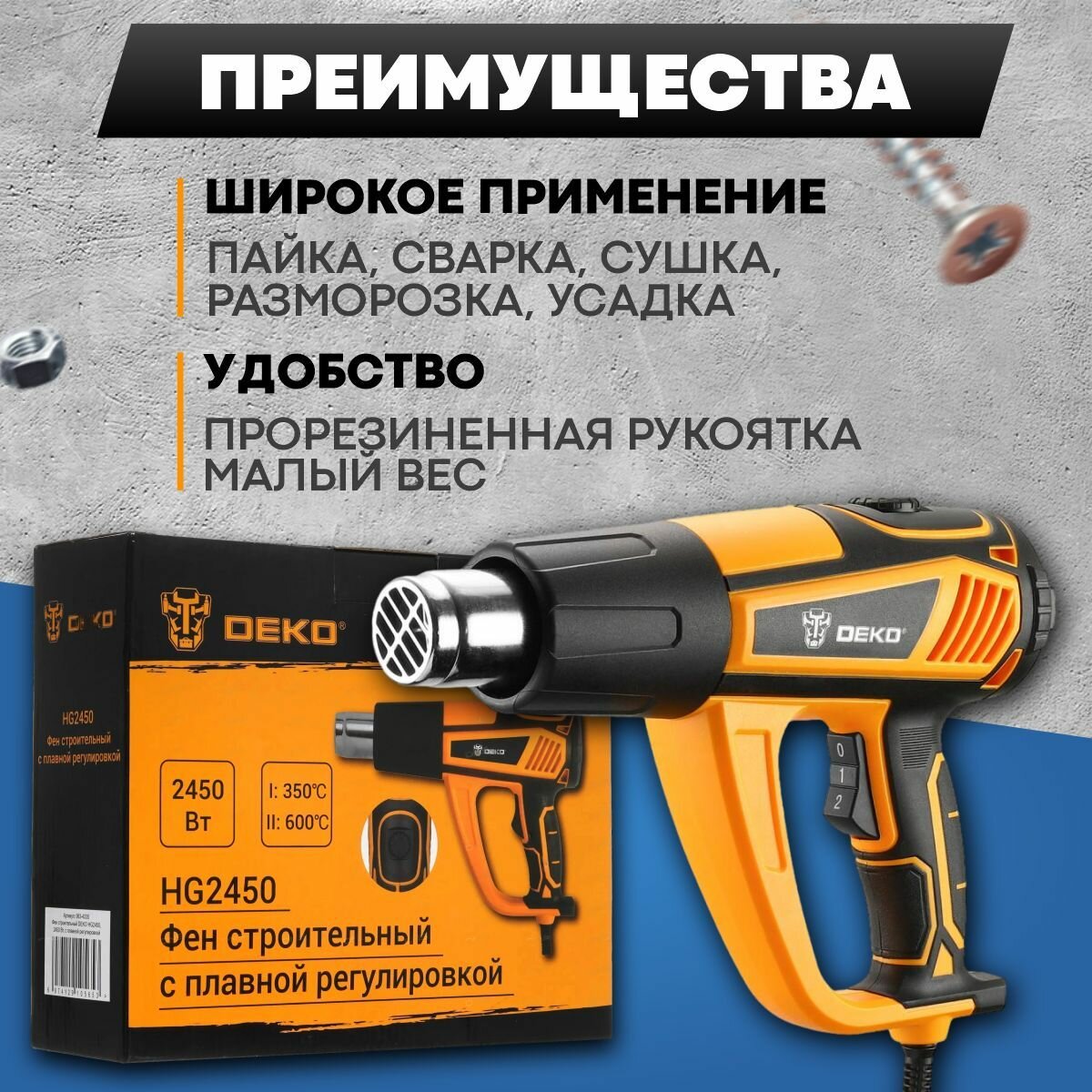 Фен строительный Deko HG2450, 2450Вт, с плавной регулировкой