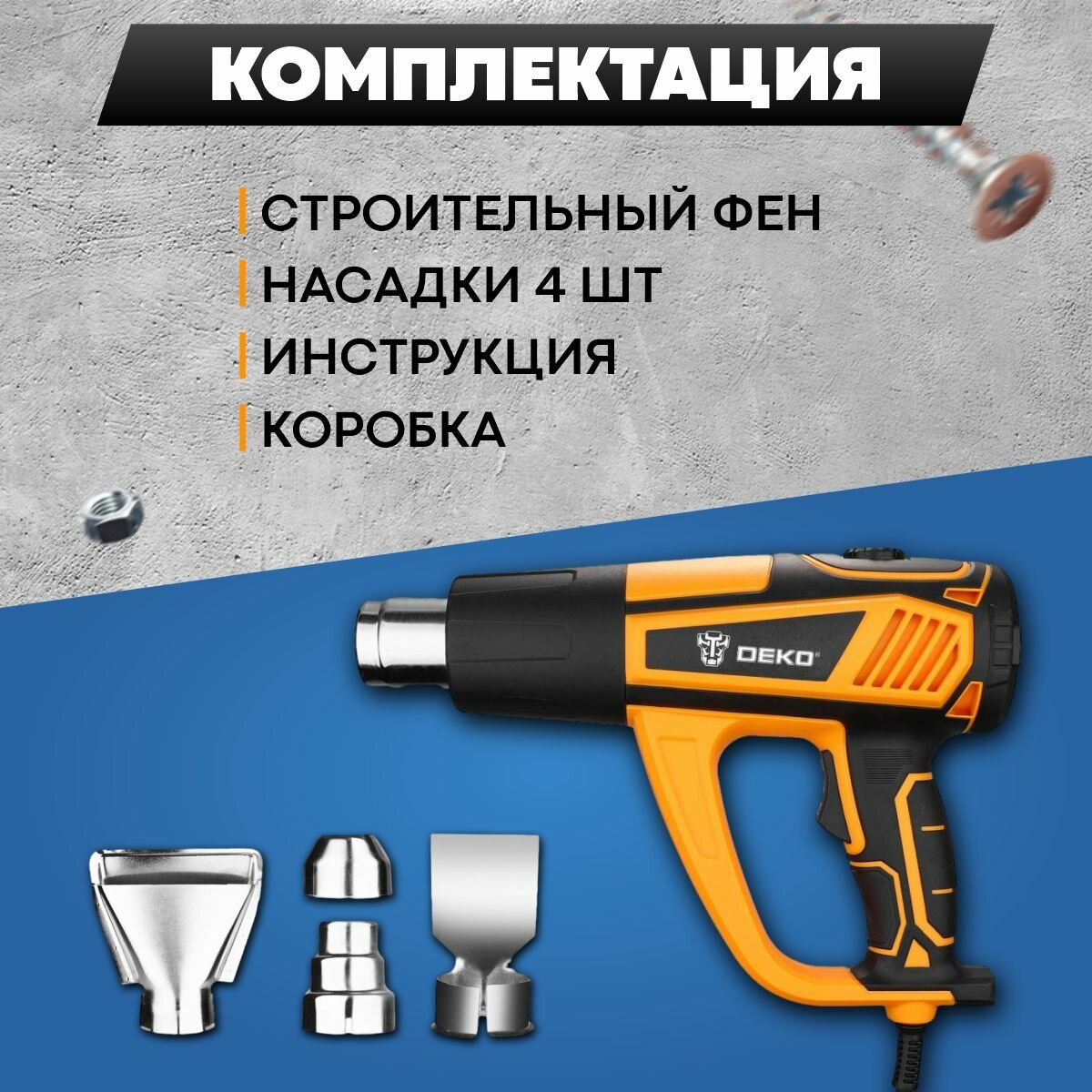Строительный фен DEKO HG2000W, 2000 Вт, 350/500 °С, защита от перегрева