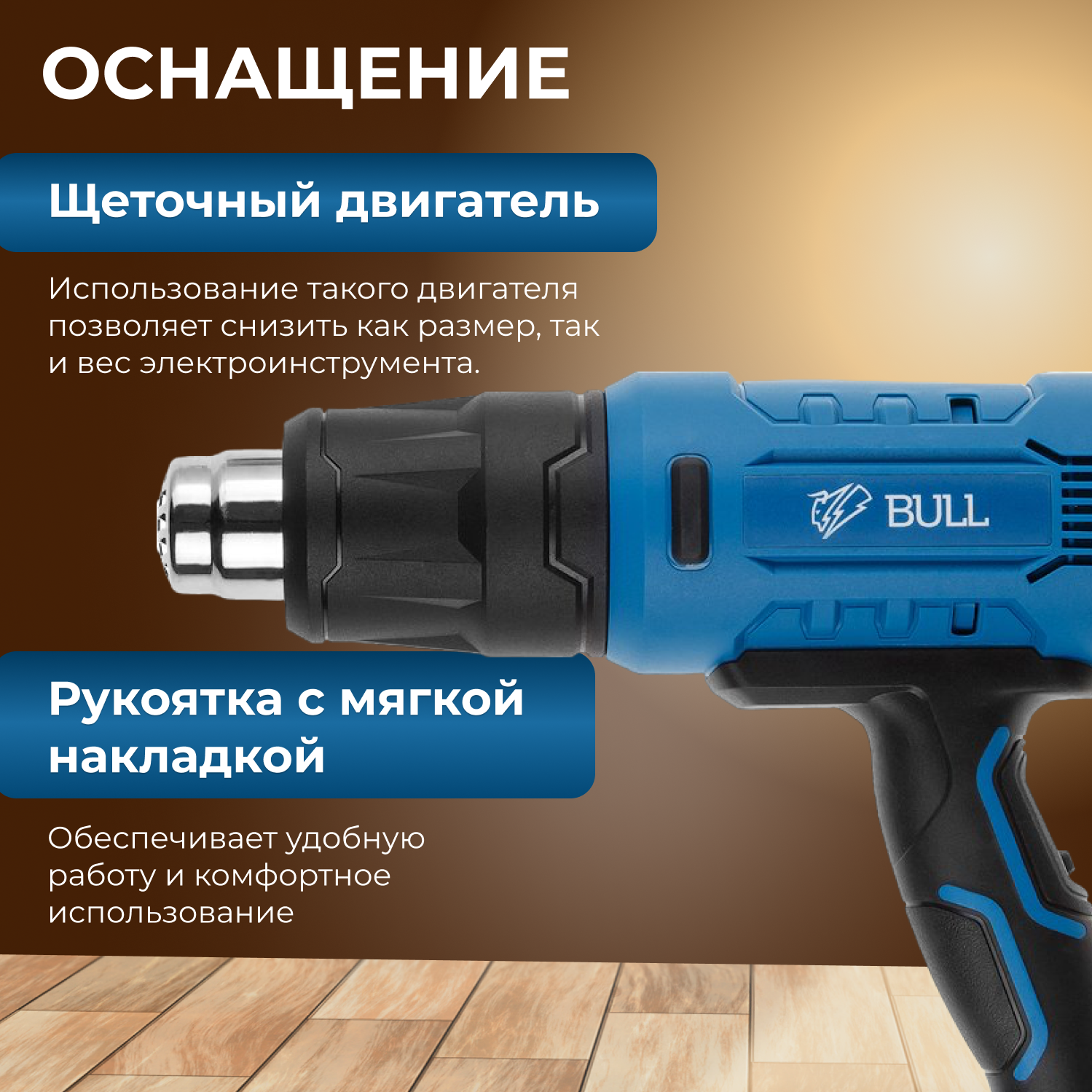 Фен строительный BULL HG 5501 + набор сопл