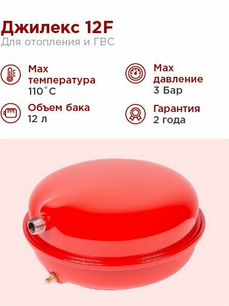 Расширительный мембранный бак 12 F, 3/4"НР, -10-110°С, 3 бар, Джилекс 7712