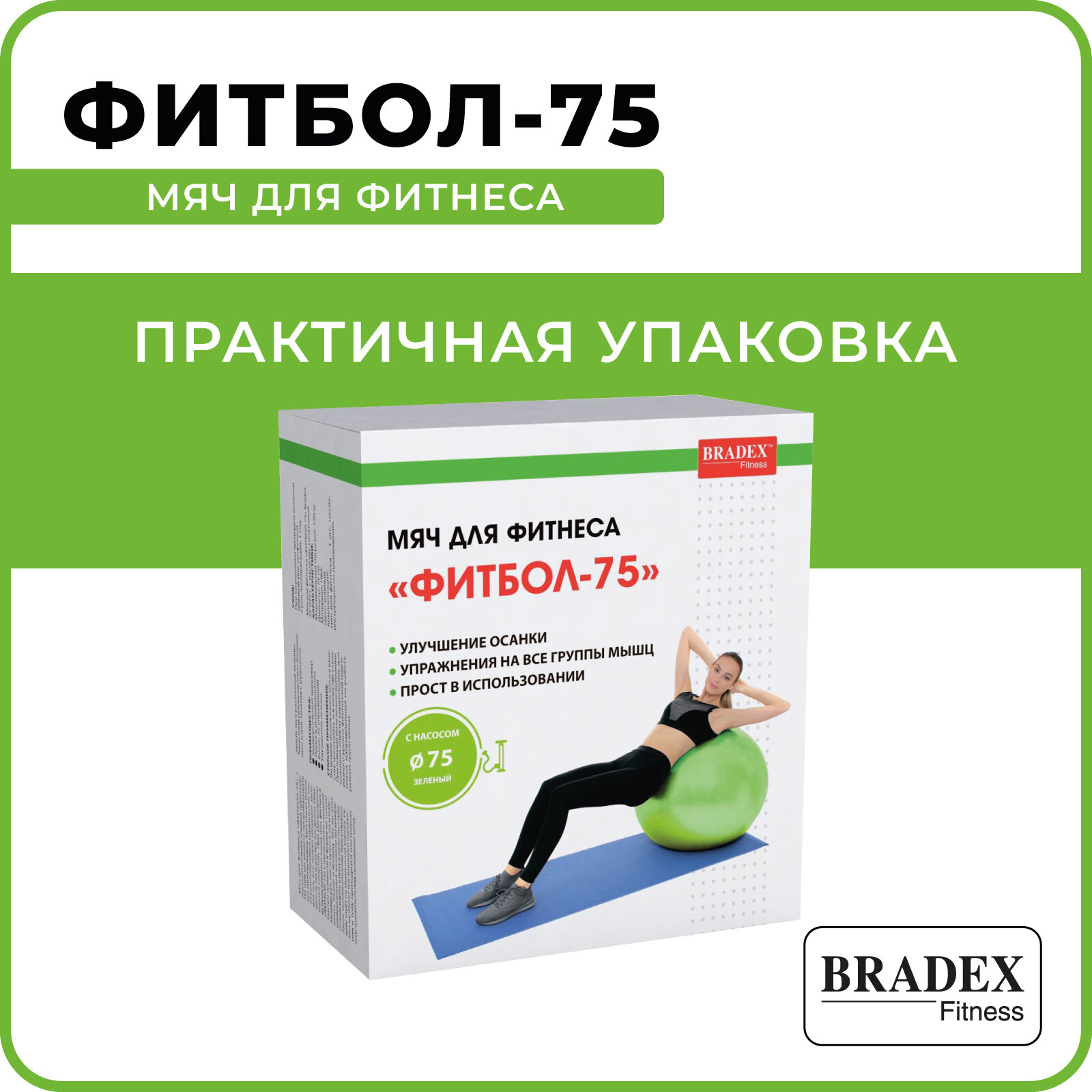 Bradex Мяч для фитнеса «ФИТБОЛ-75» Bradex SF 0721 с насосом, салатовый (SF 0721)