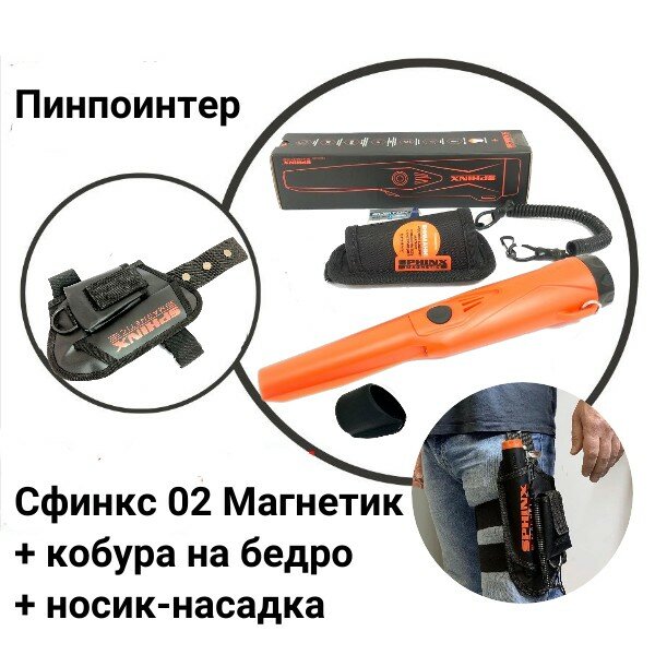 Пинпойнтер Сфинкс 02 (Sphinx) Magnetic оранжевый, кобура Сфинкс Magnetic на бедро (черная) интересное: