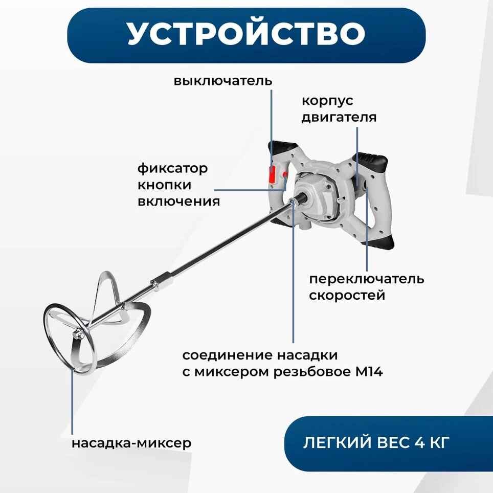 Миксер строительный Electrolite М-1600, 1,6 кВт, М14, 930 оборотов в минуту