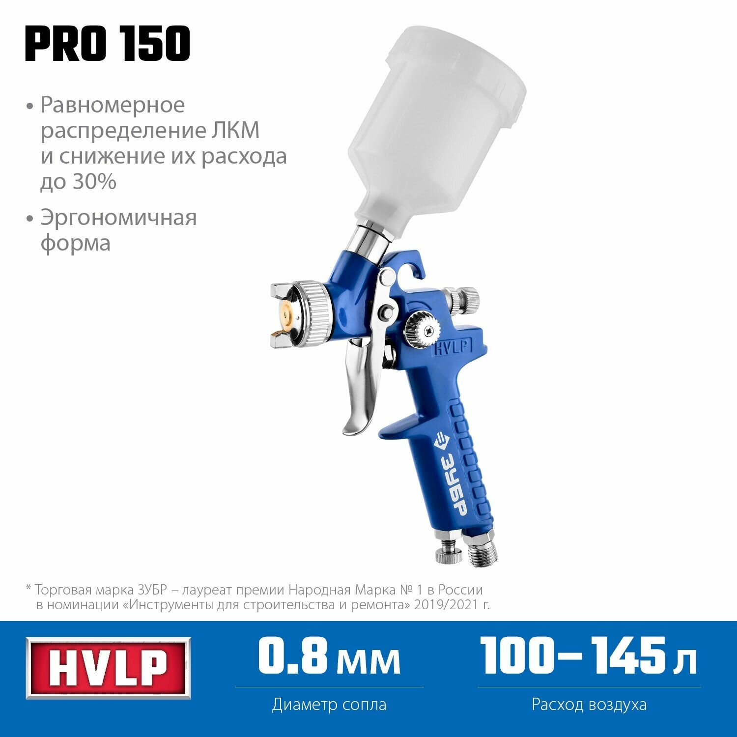 Краскораспылитель Зубр Профессионал про 150 Мини, HVLP, c верхним бачком, 0.8мм