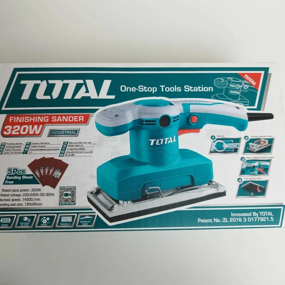 Плоскошлифовальная машина TOTAL 320Вт, 180 мм x90 мм,14000 об/мин