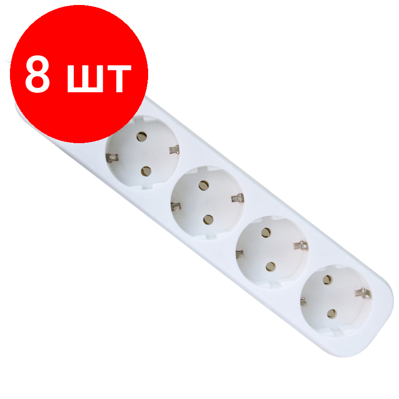 Купить Комплект 8 шт, Удлинитель Defender S418, 4 розетки, с заземлением, выключатель, 1.8м, белый