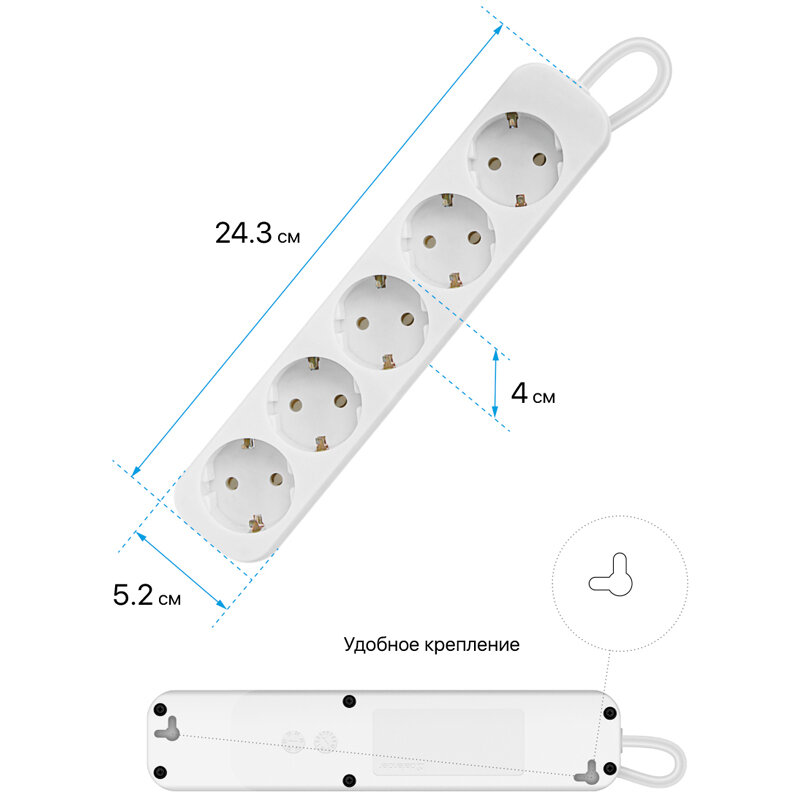 Удлинитель Defender E550 (99231), 5 розеток, с/з, 10А / 2200 Вт белый 5 м 243 мм 52 мм 40 мм 5