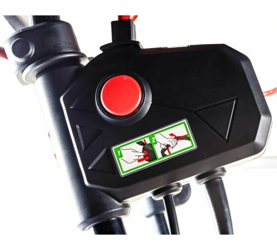 | Минусы: | Пластиковый кожух между задней осью и ножом мягкий, туда забивается трава скошенная |
