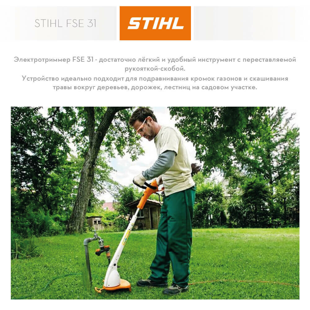 Триммер электрический Stihl FSE 31, ширина скашивания 24,5 см, 245 Вт интересное: