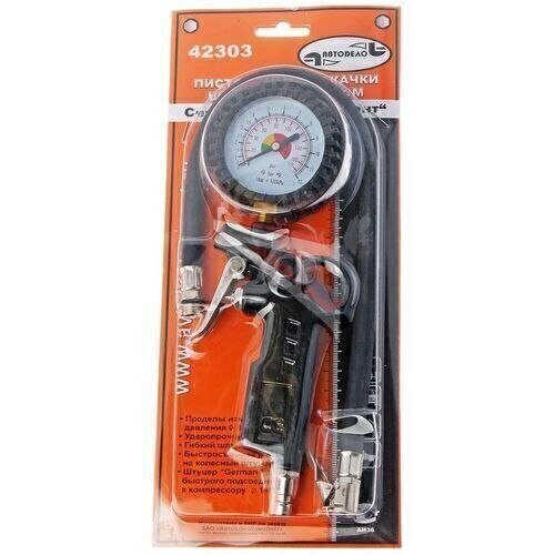 Пистолет для накачки шин с манометром 10атм автодело АвтоDело (42303)