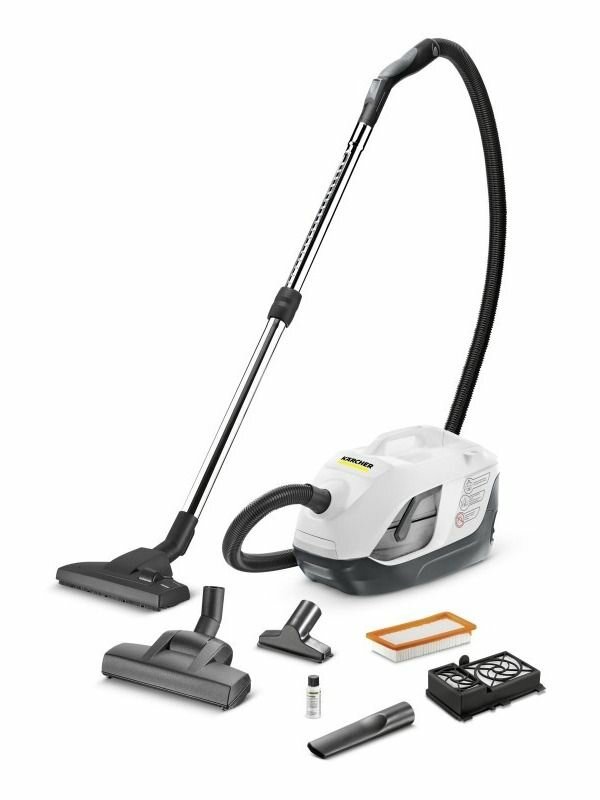 Пылесос для дома Karcher DS 6 1.195-250.0, с аквафильтром, многоступенчатая система фильтрации, 3 насадки, 650 Вт, 80 Дб, в комплекте пеногаситель FoamStop, белый/черный