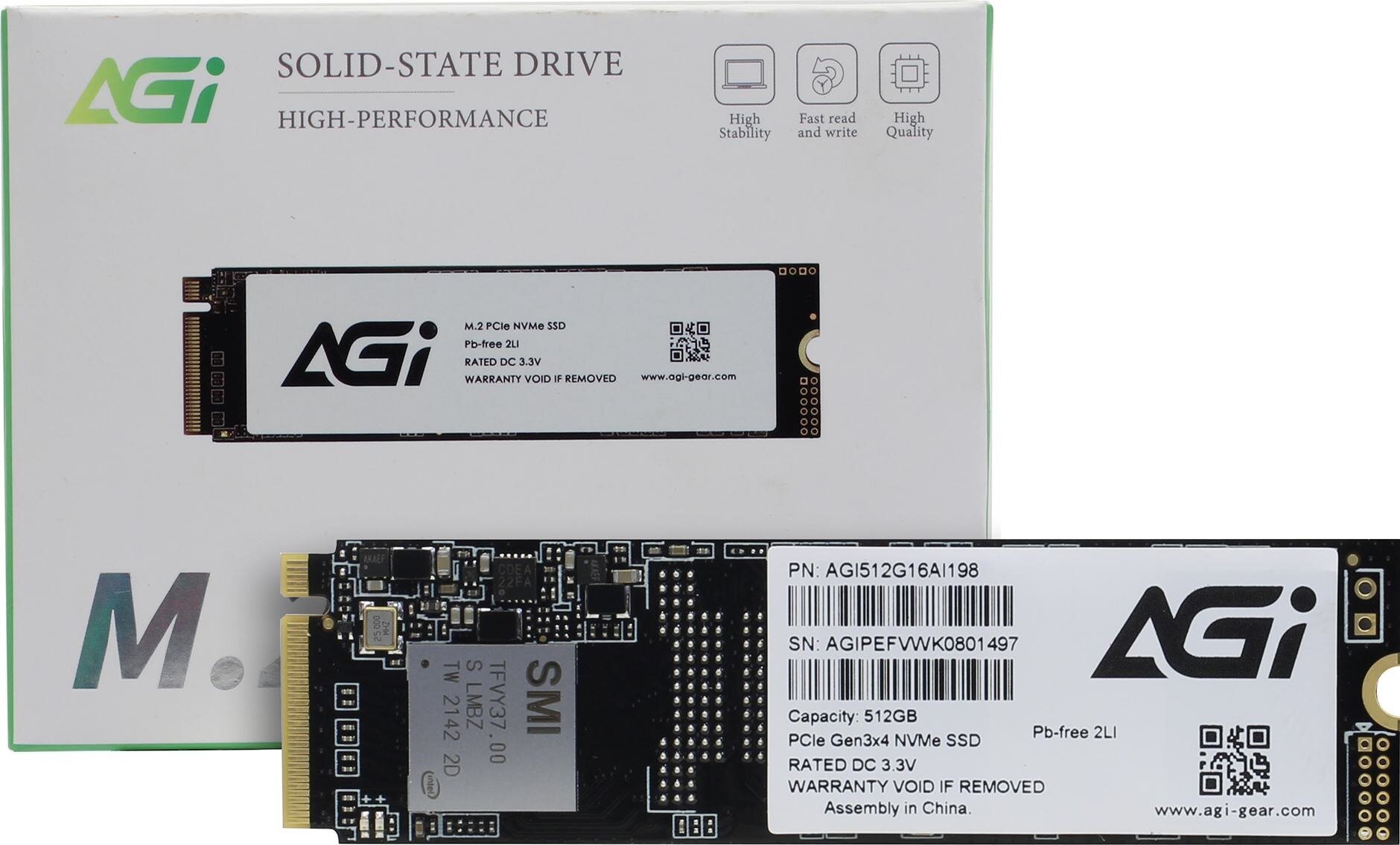 Накопитель SSD M.2 2280 AGI AGI512G16AI198 AI198 512GB PCI-E 3.0 x4 3D TLC 2500/1750MB/s IOPS 182K/247K MTBF 1.6M 250TBW