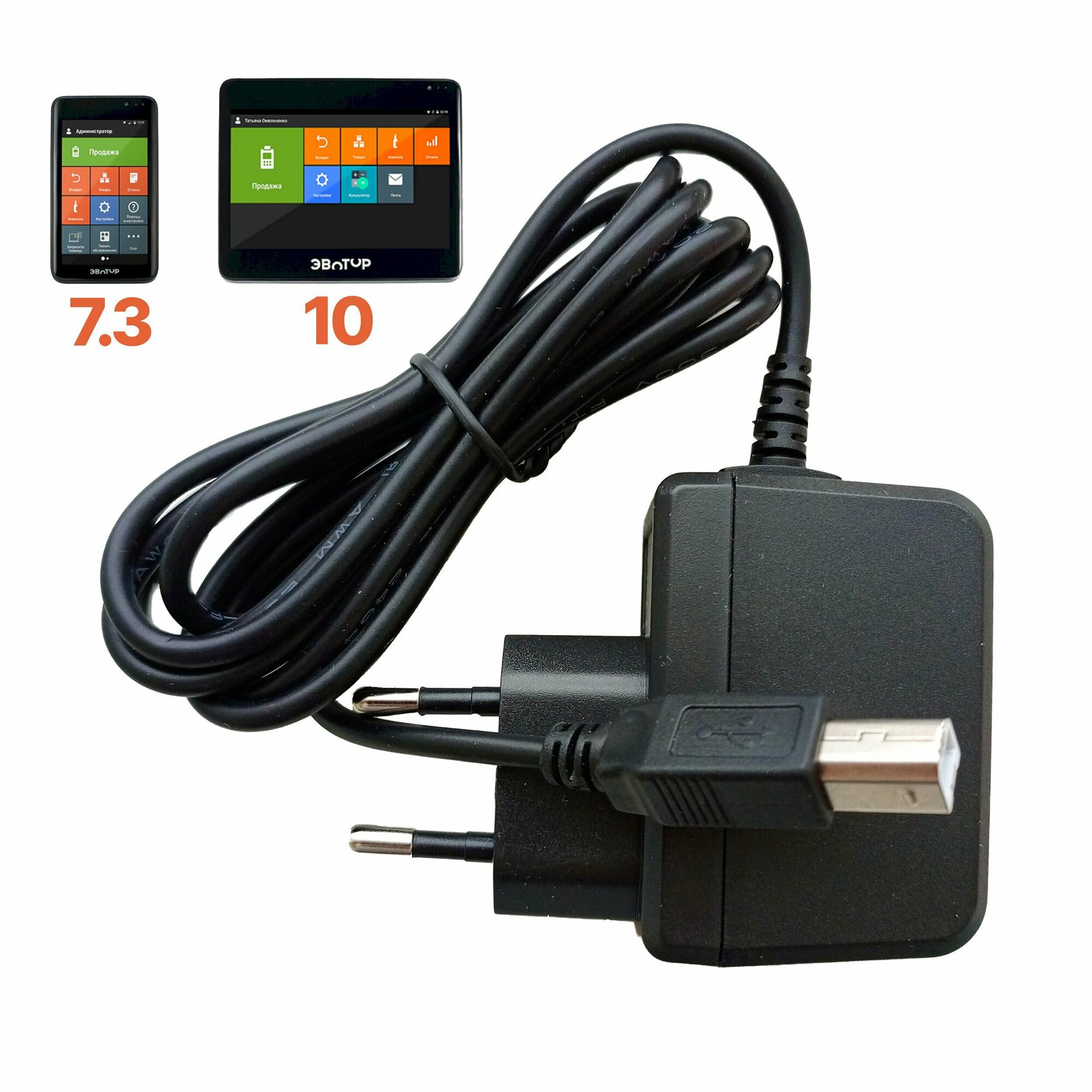 Блок питания для онлайн-кассы Эвотор 7.2 и 10 с кабелем интересное: