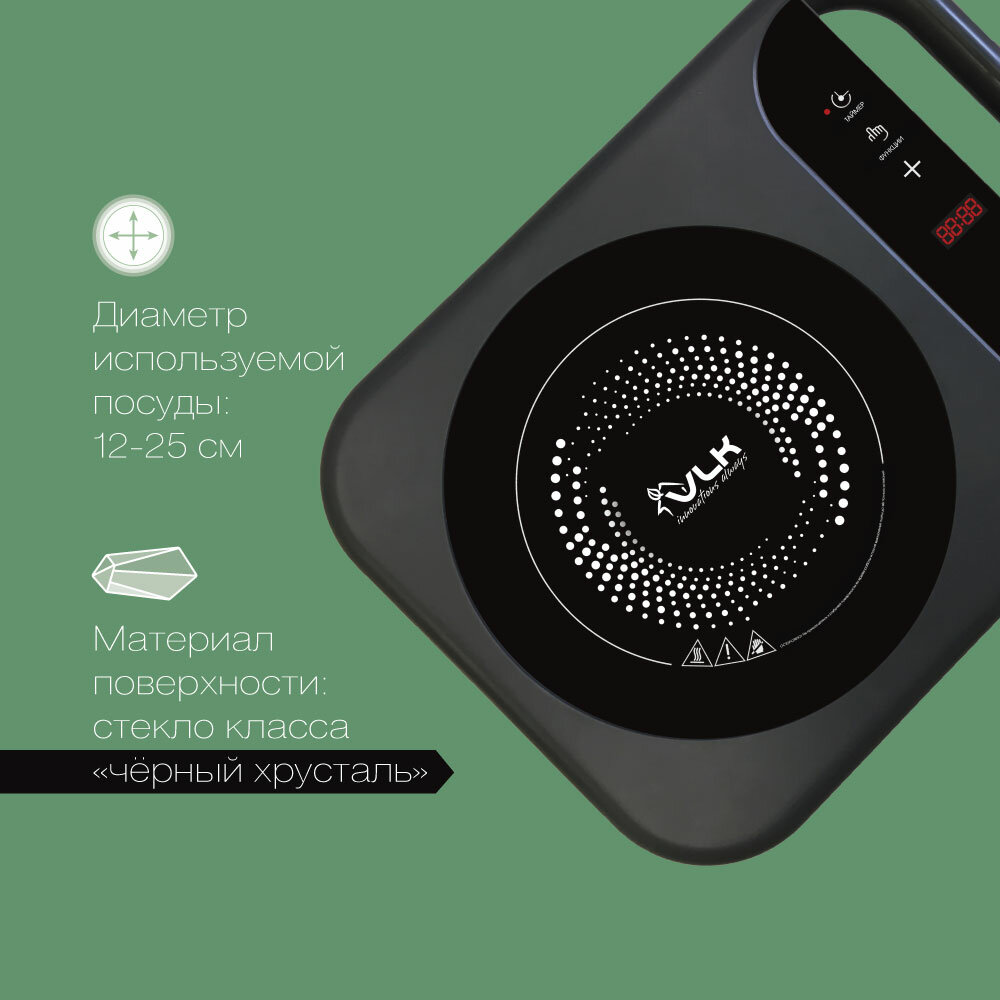 Индукционная плита настольная электрическая VLK Palermo-7727 / 2000 Вт / до 15 кг / до 240 градусов / 8 уровней регулировки мощности