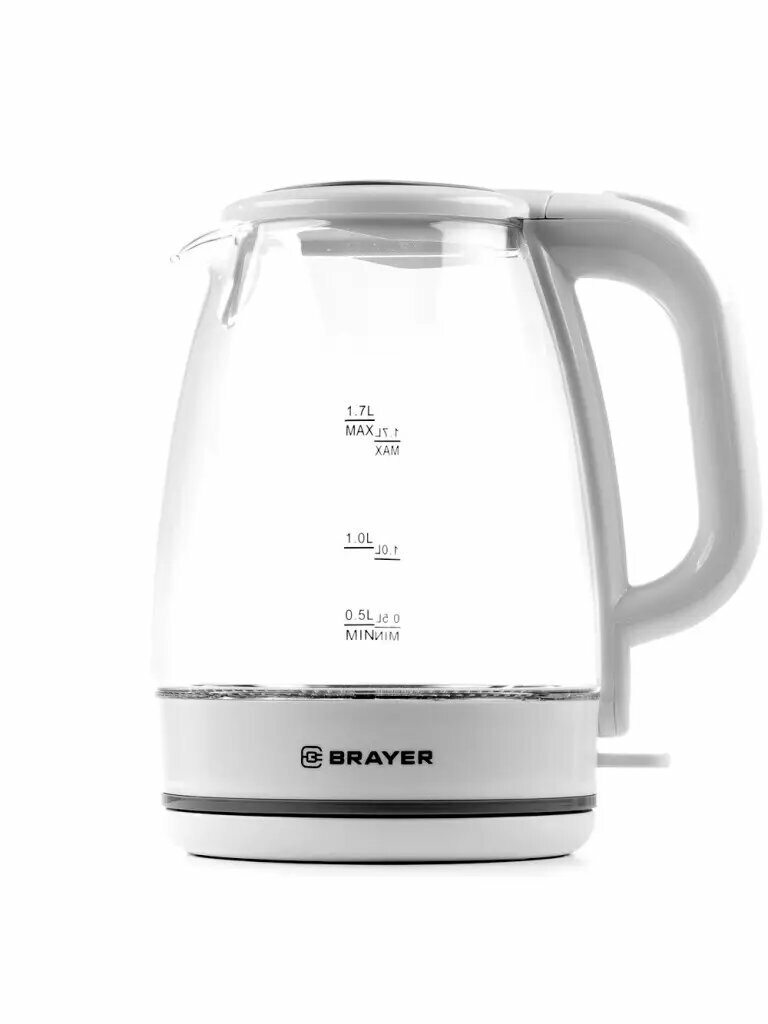 BR1030WH, Чайник BRAYER 1030BR-WH,2200 Вт, 1,7 л, стекл.корп., подсветка