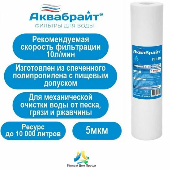 Купить Картридж "Аквабрайт" ППЛ-5 М, 10" SL, полипропиленовый, для холодной воды, 5 мкм 10368091