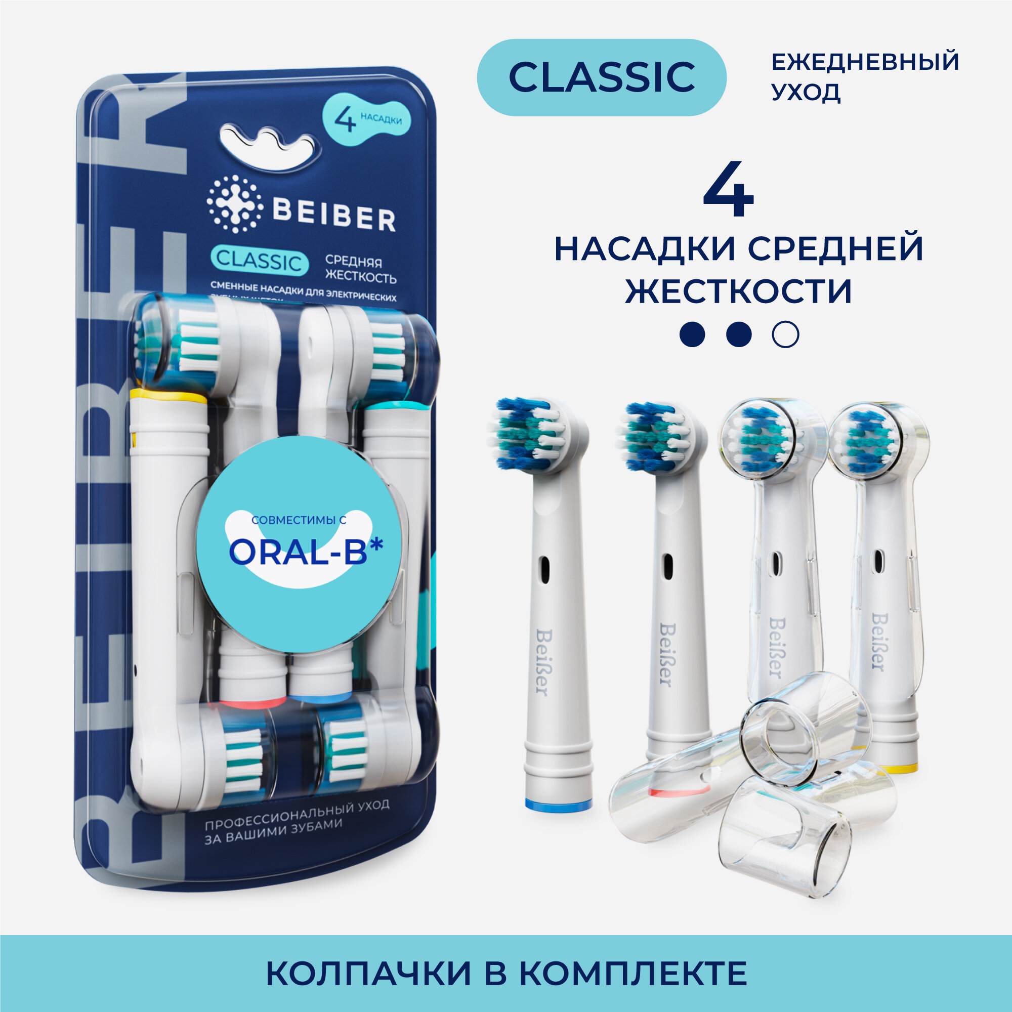 Насадка для электрической зубной щетки BEIBER CLASSIC совместимые с Oral-B, 4 шт