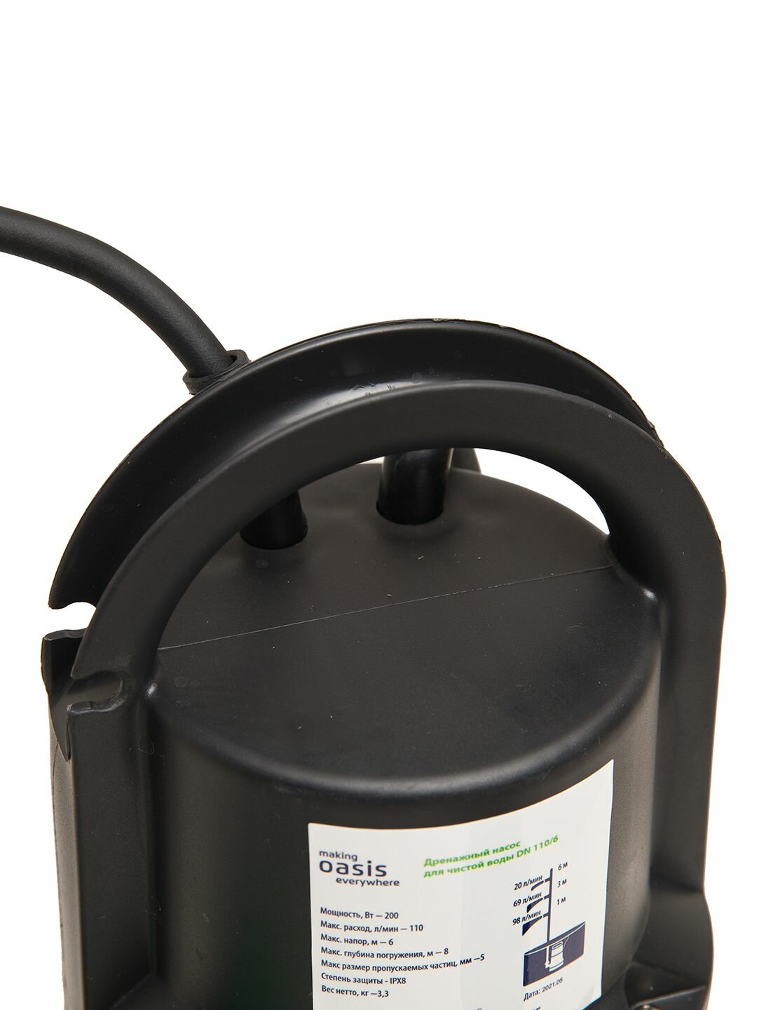 Насос дренажный, Oasis, 10 м, 200 Вт, глубина погружения 8 м, максимальный напор 6 м, 6.6 м3/час, DN 110/6