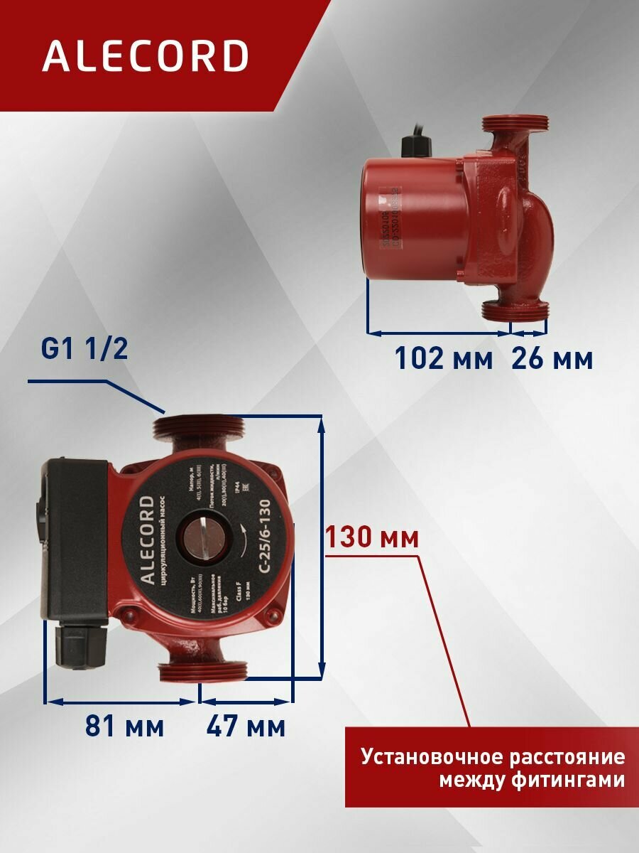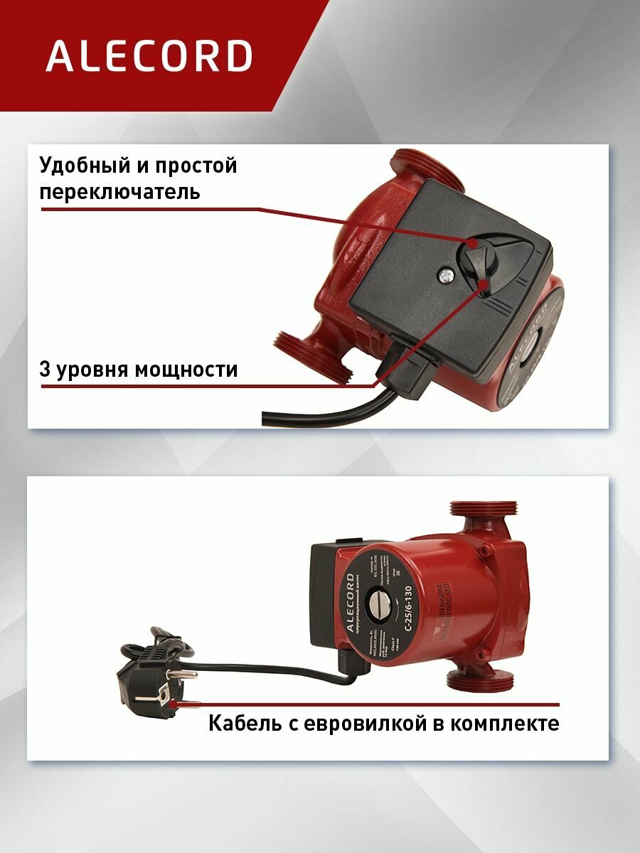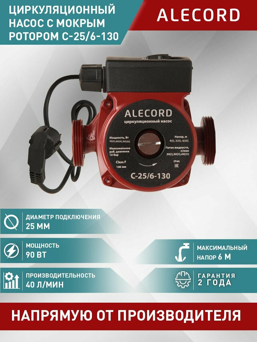 Насос циркуляционный ALECORD C-25/6-130 с кабелем интересное: