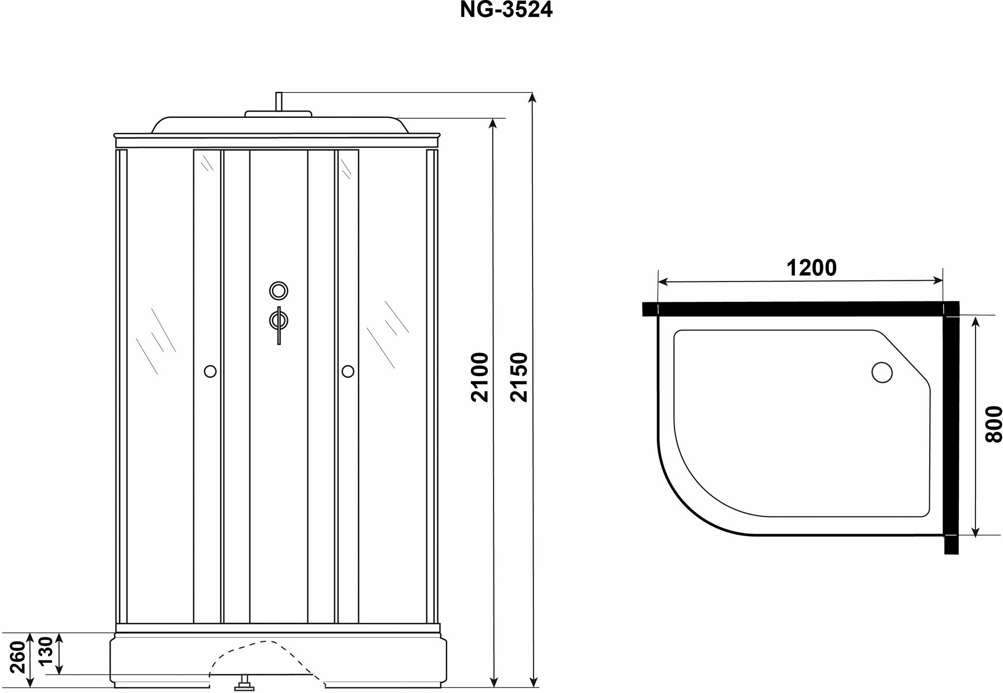 Душевая кабина NG-7711WR (900x1200х2150) низкий поддон стенки белые