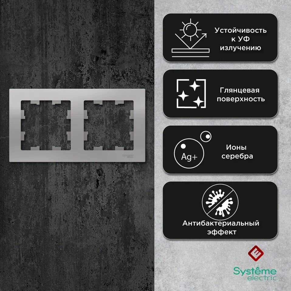 СохранитьРамка 2-постовая для розеток и выключателей 7 шт Schneider Electric/Systeme Electric AtlasDesign алюминий Шнайдер ATN000302 интересное: