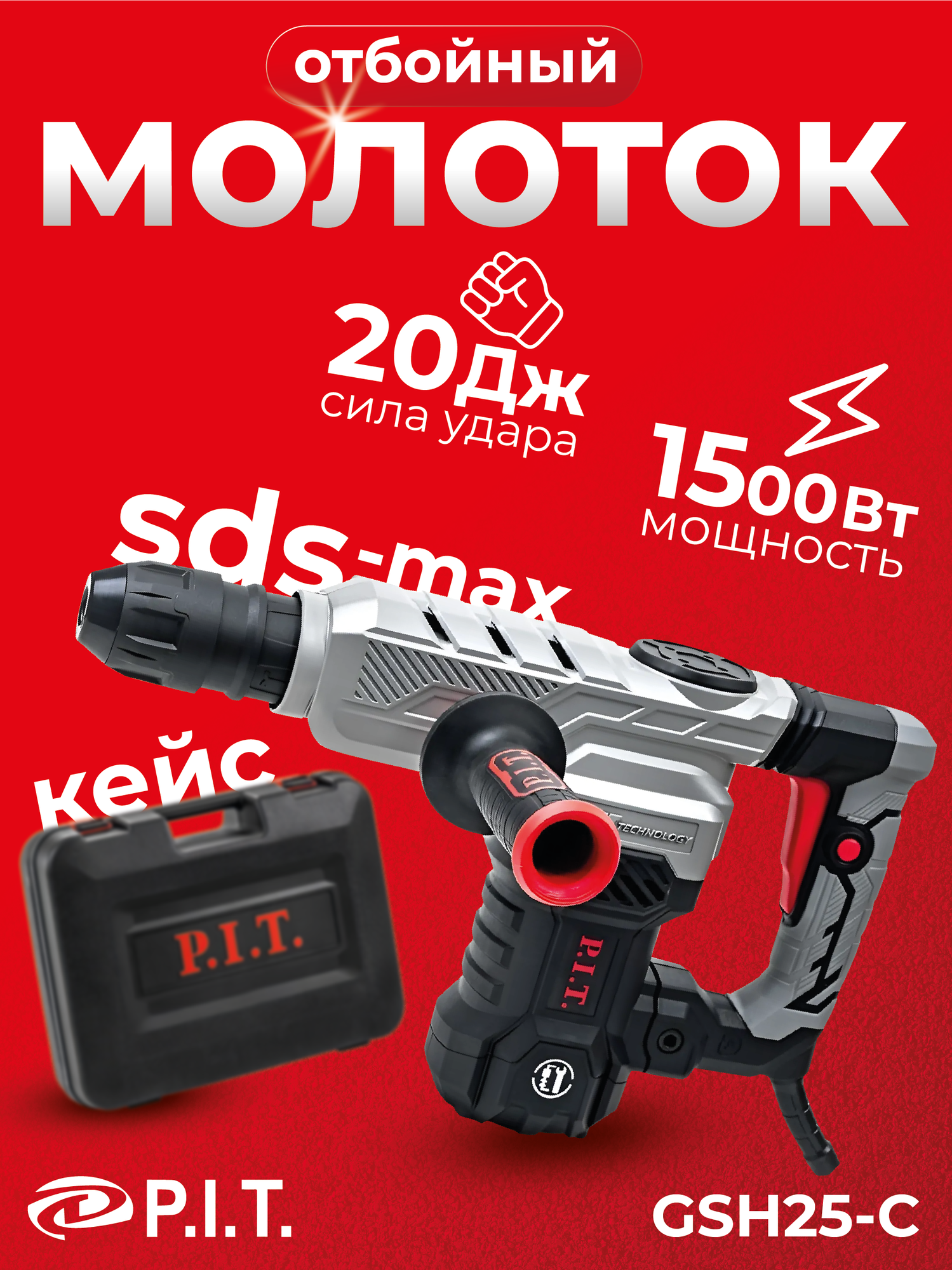 P.I.T. Отбойный молоток P.I.T. GSH25-C, SDS-MAX, 1500Вт, 20Дж