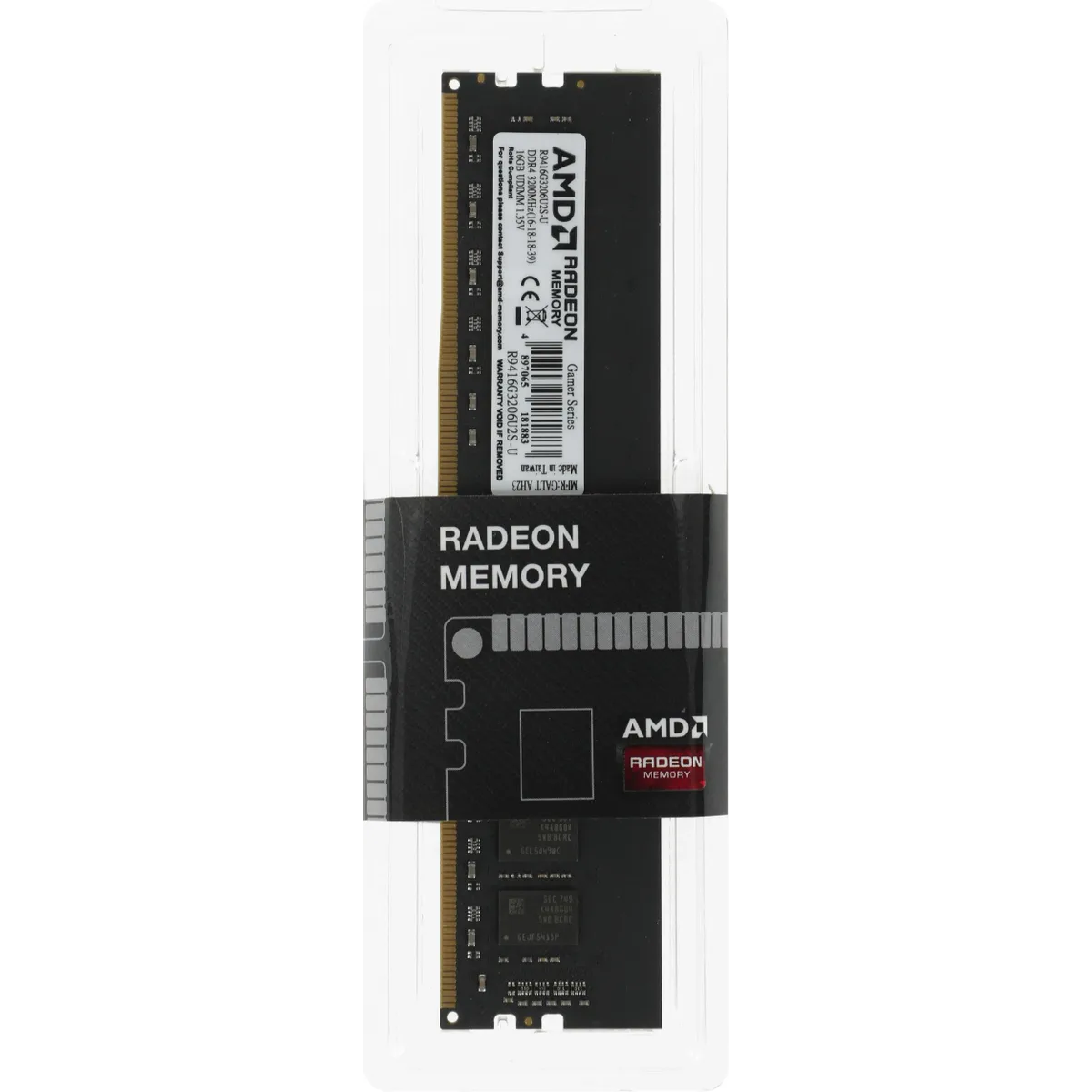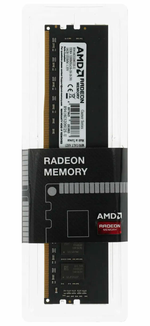 Оперативная память AMD R9 DDR4 - 16GB, 3200 МГц, DIMM, CL16 (r9416g3206u2s-u)