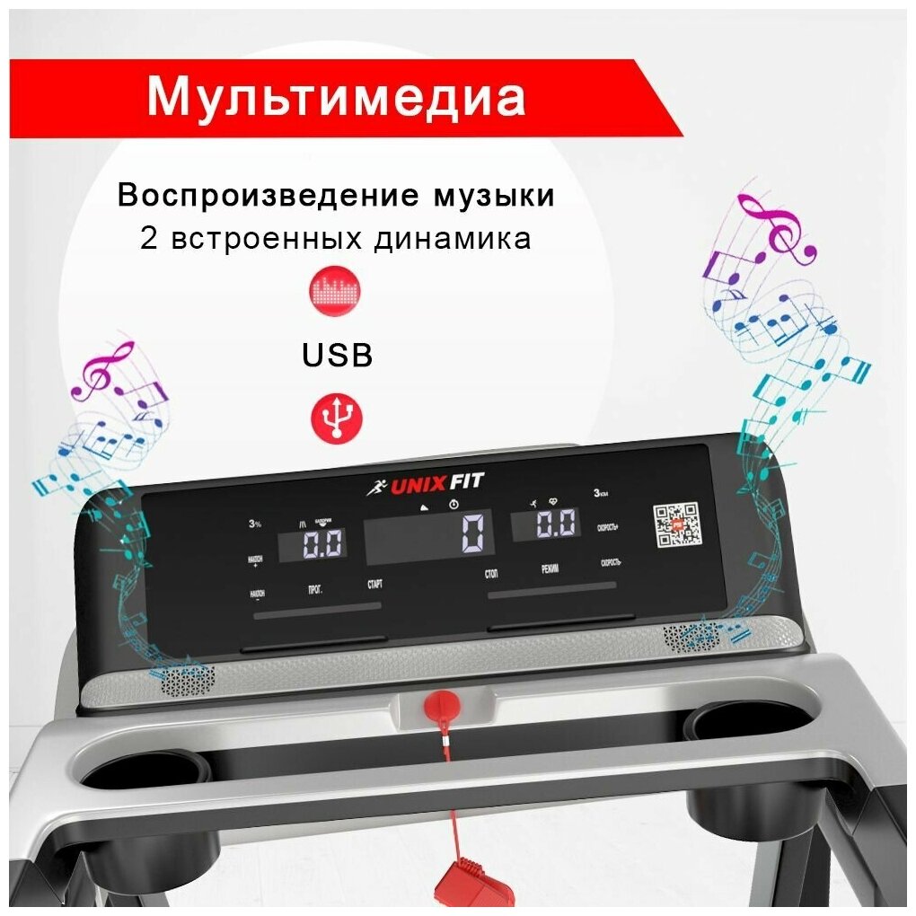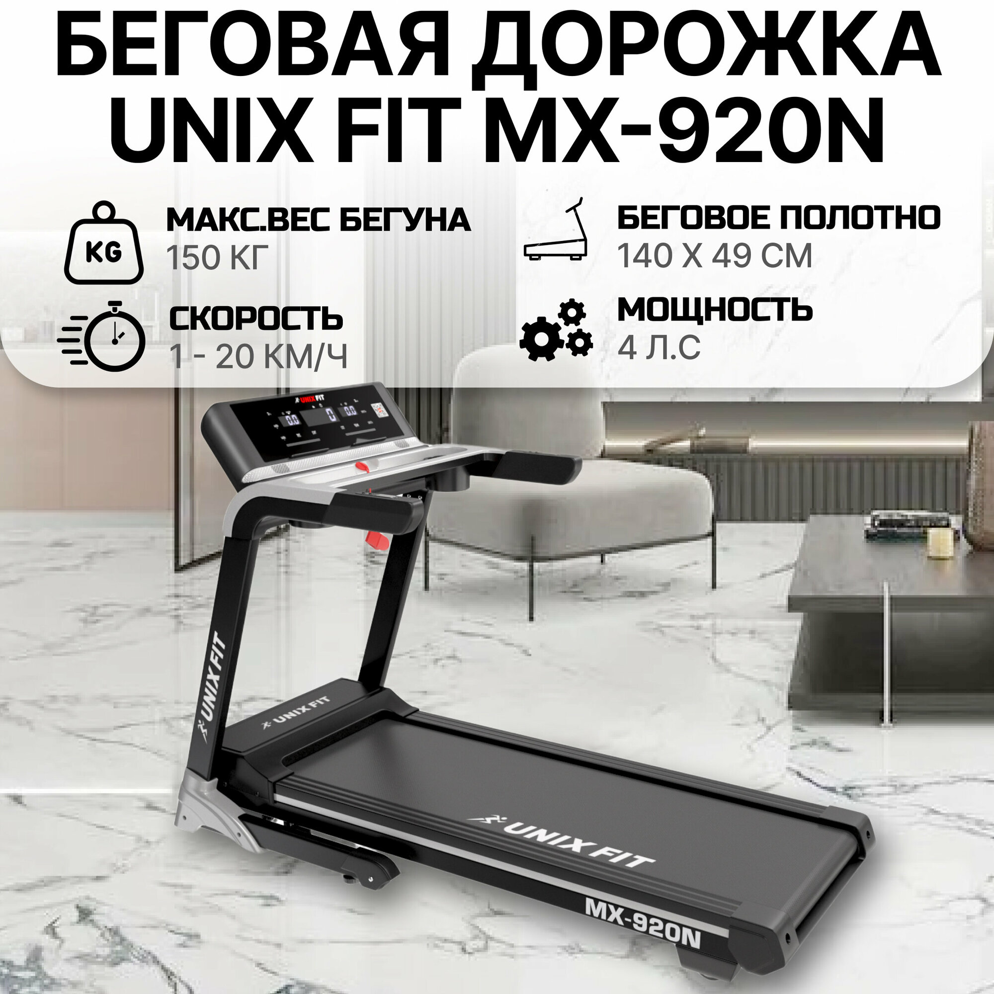 Беговая дорожка UNIXFIT MX-920N + коврик, 3,25 л.с., до 150 кг, скорость 1.0 - 20 (шаг 0.1) км/ч, 8 цилиндрических эластомеров