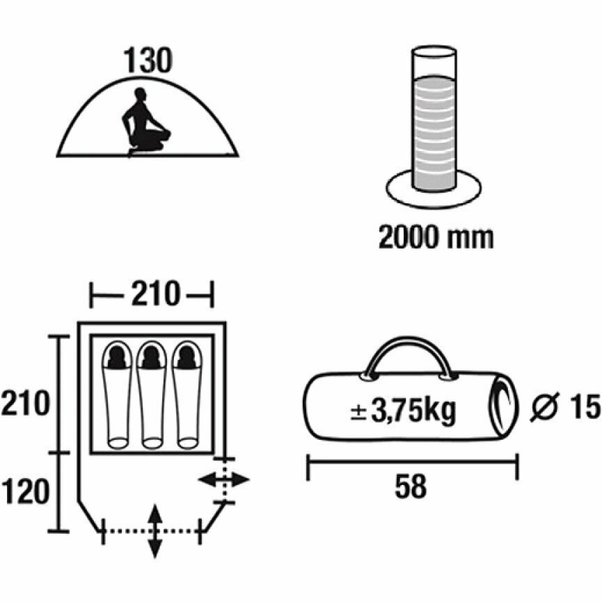 | Габариты внешней палатки(ДxШxВ) | 330x210x130 cм |