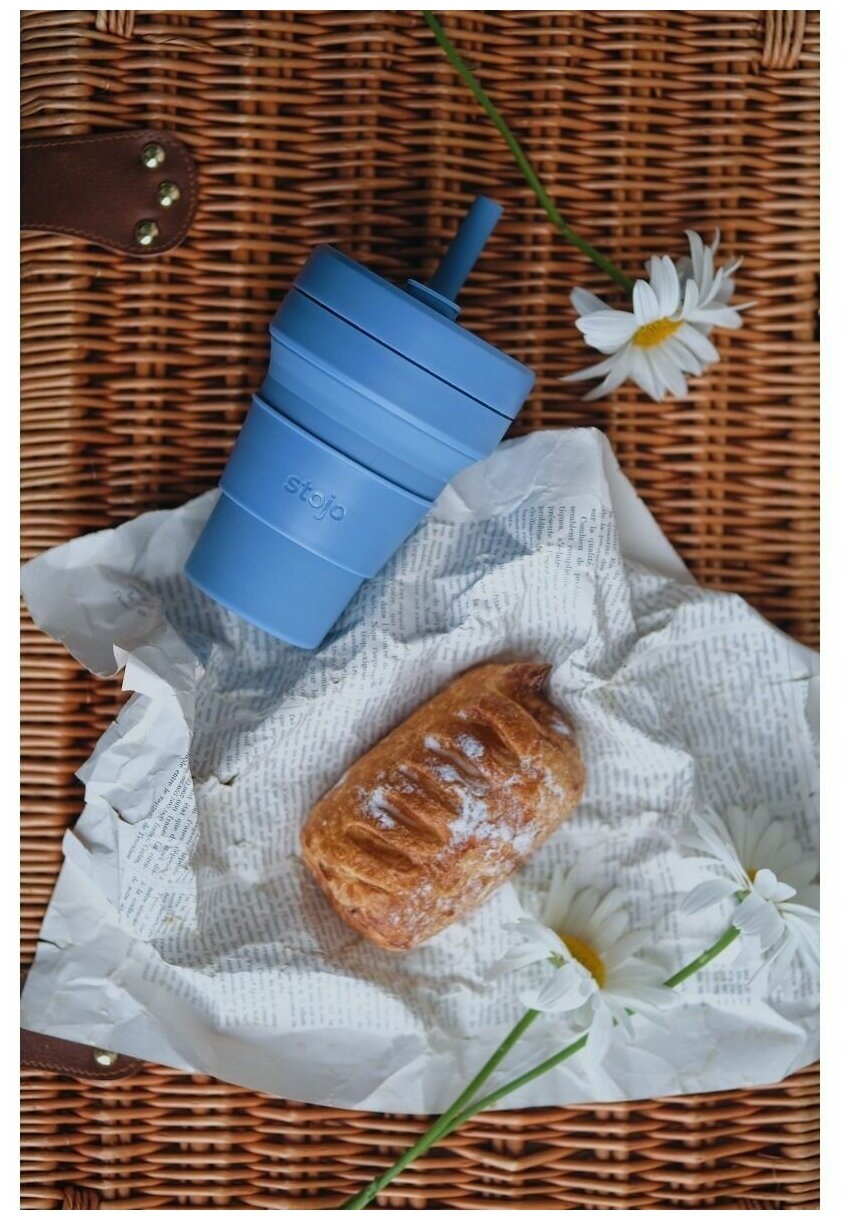 Cкладной стакан силиконовый с крышкой и трубочкой STOJO 470 мл., цвет синий